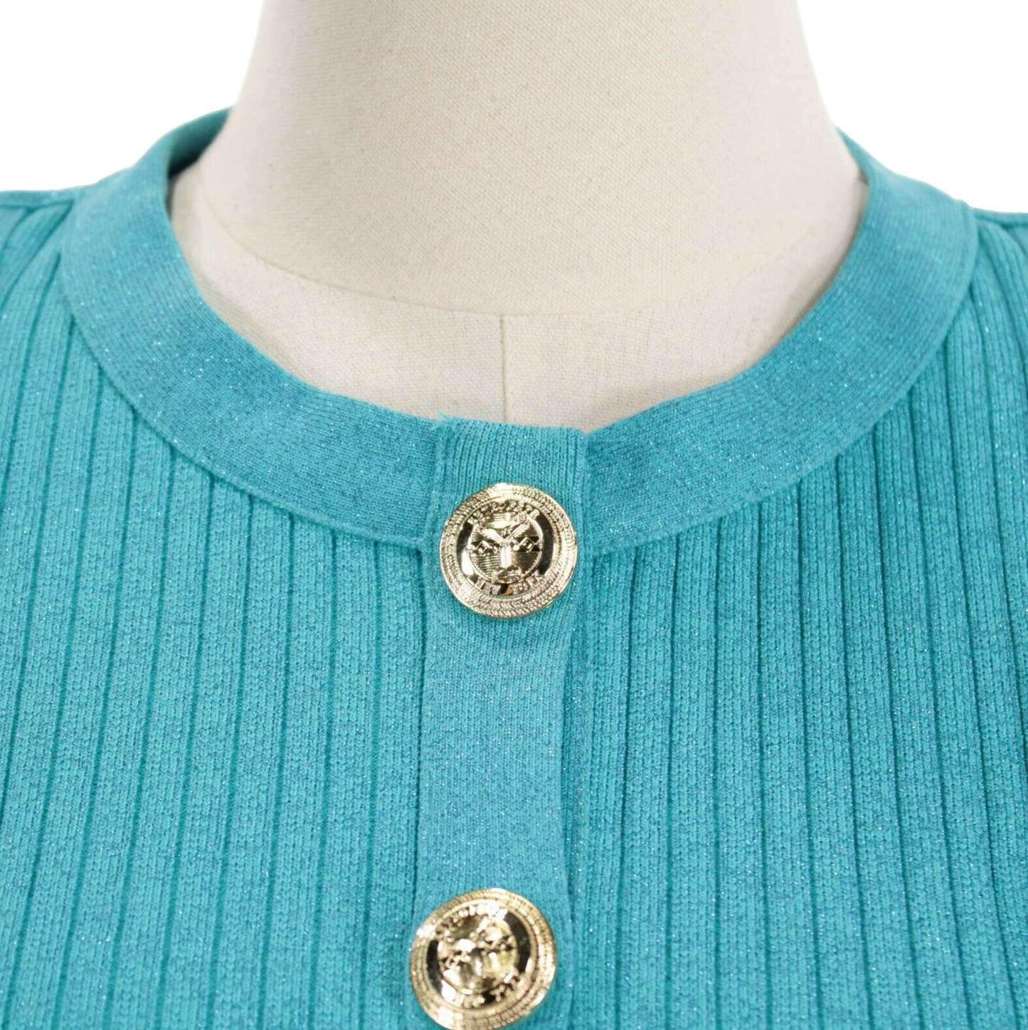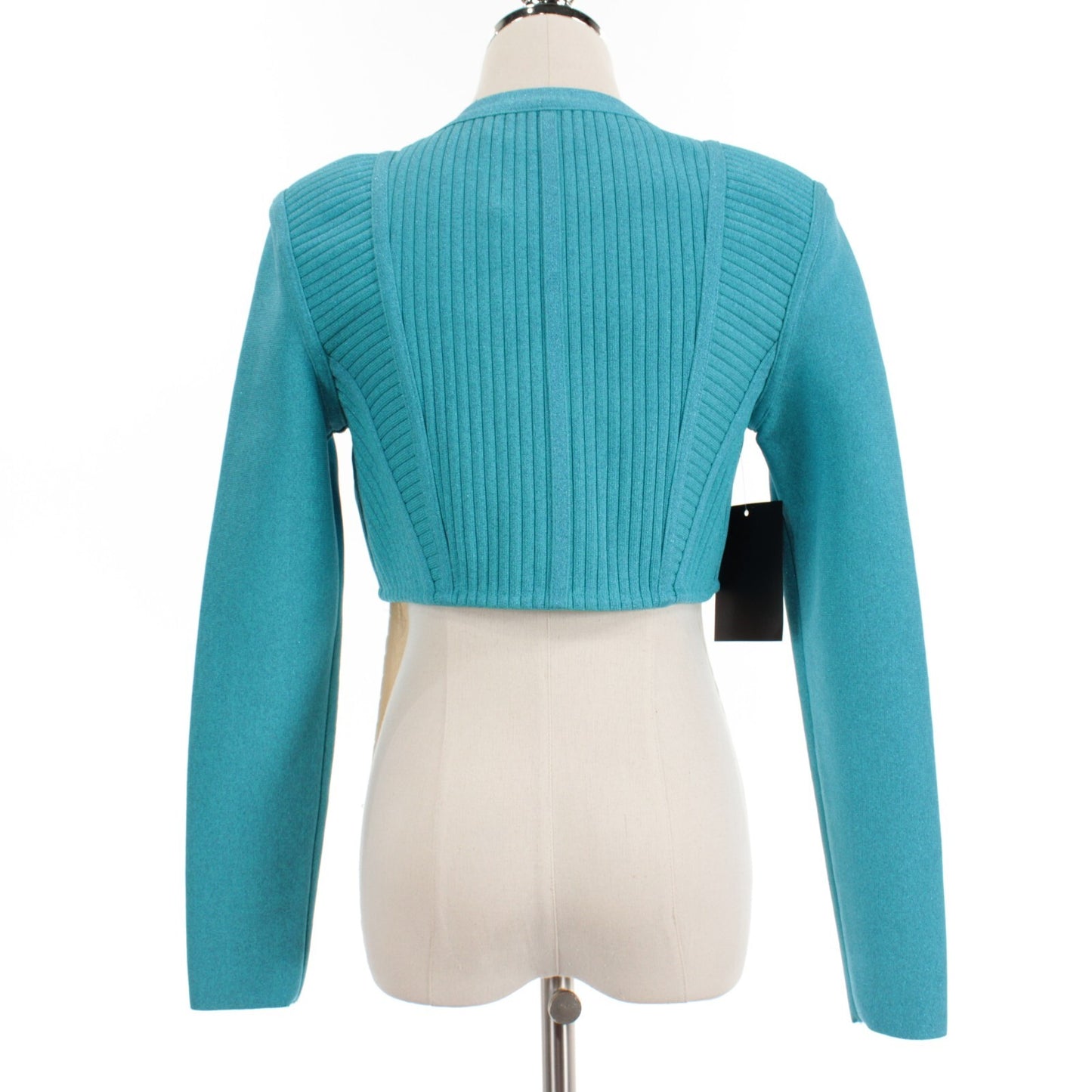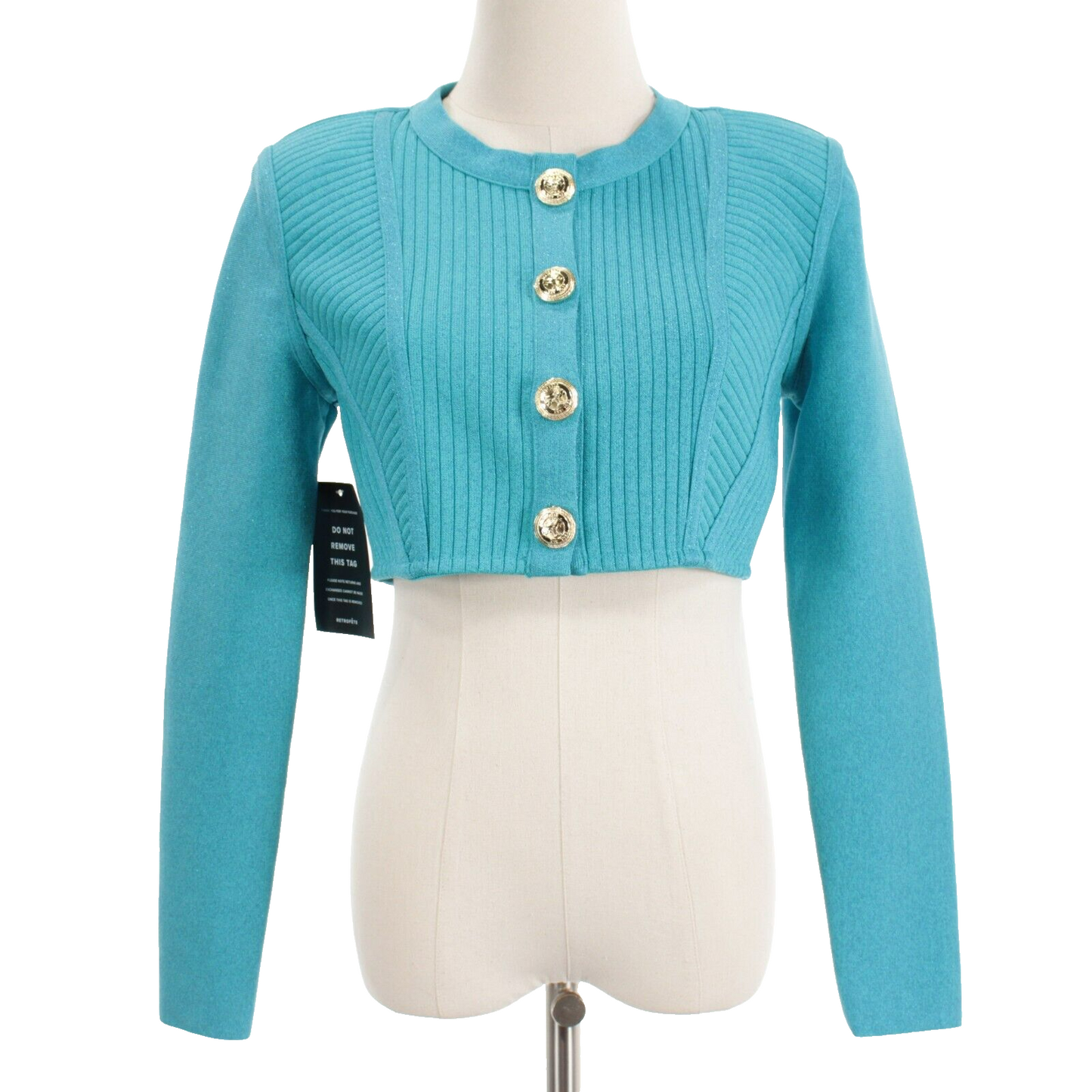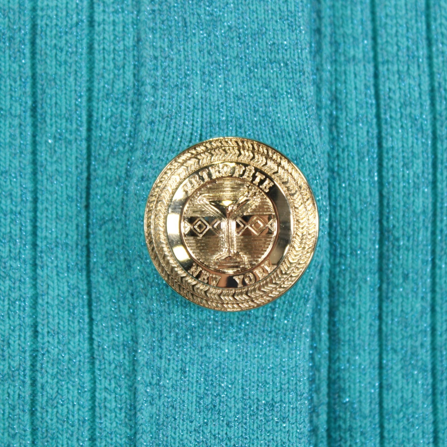 Retrofete NWT Nigel Bandage Knit Cardigan Size Large in Metallic Aqua Blue