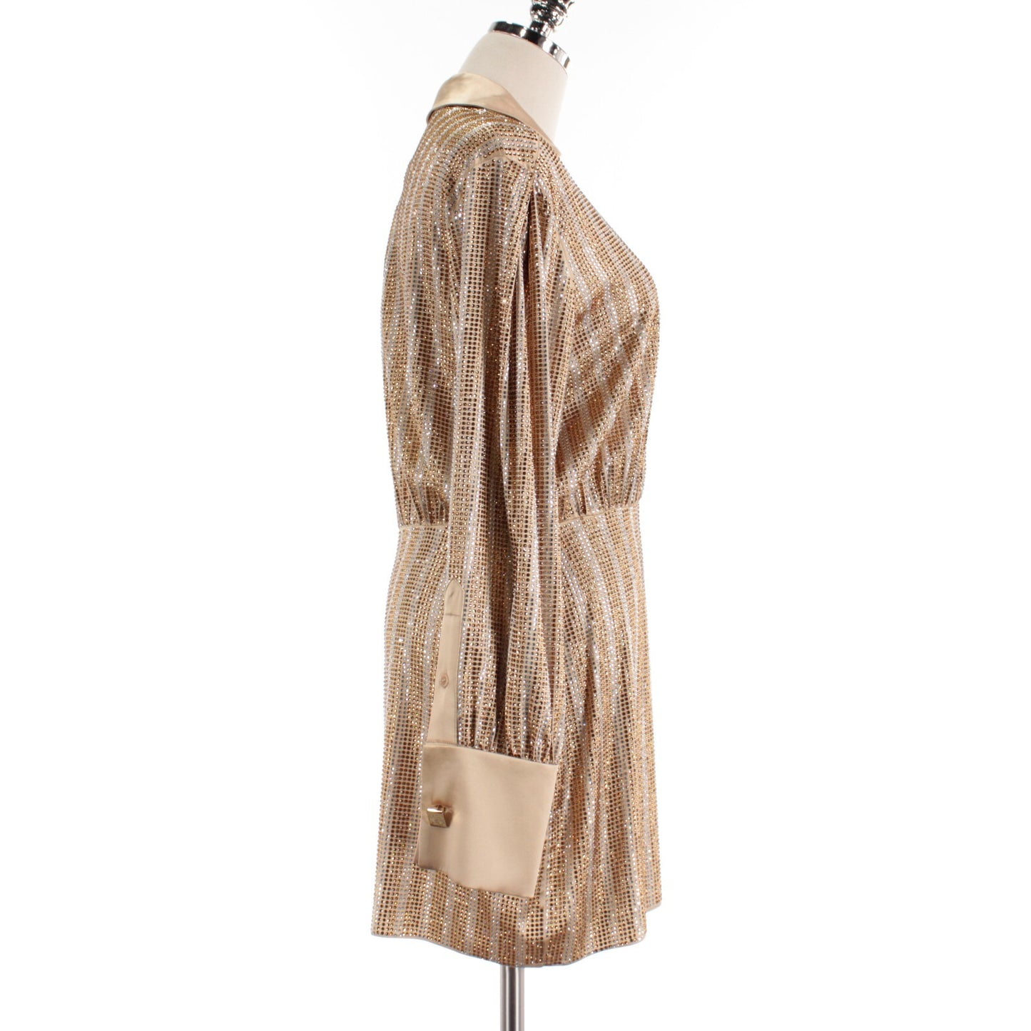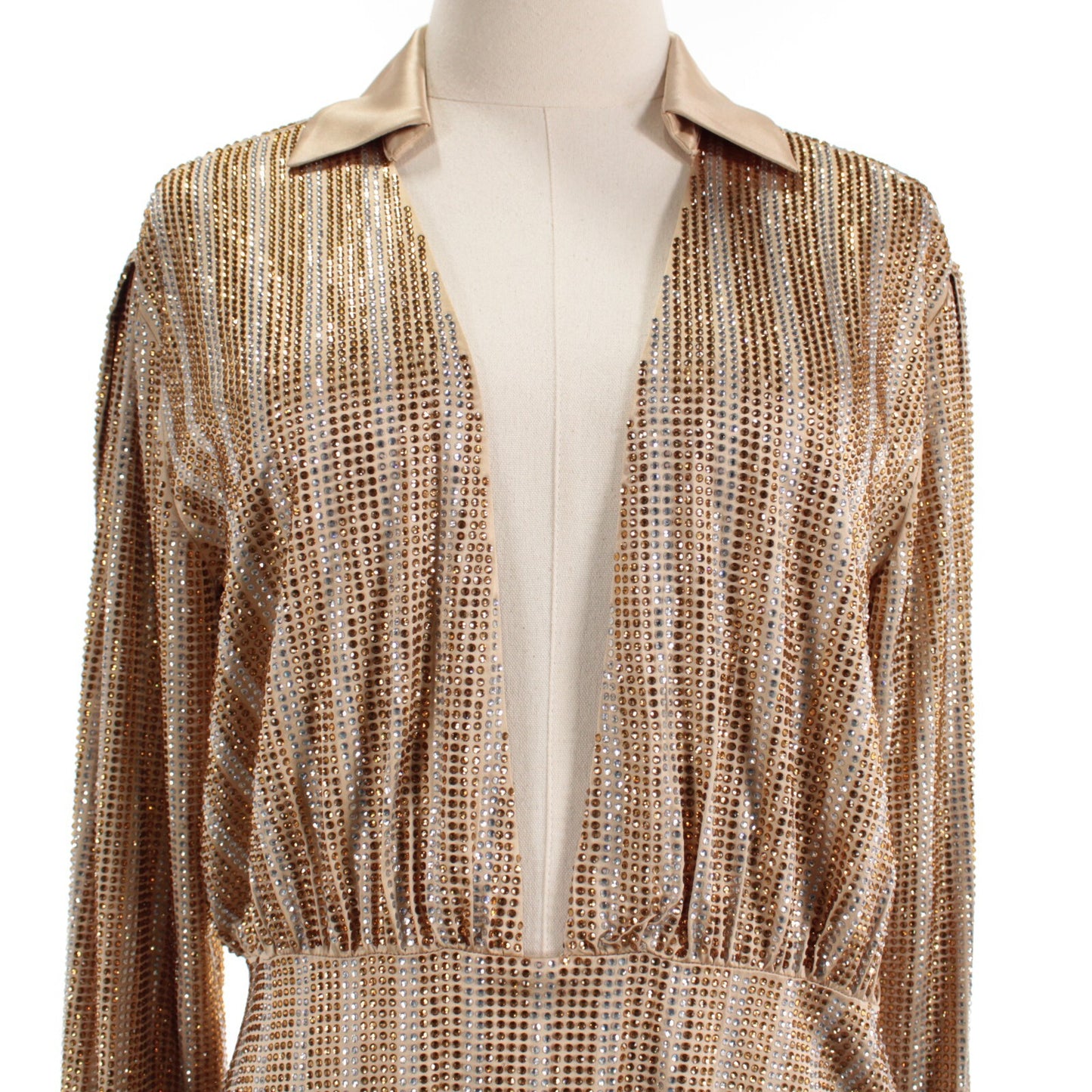 Retrofete NWT Oliver Embellished Rhinestone Silk Dress Size M Nude (Gold/Silver)
