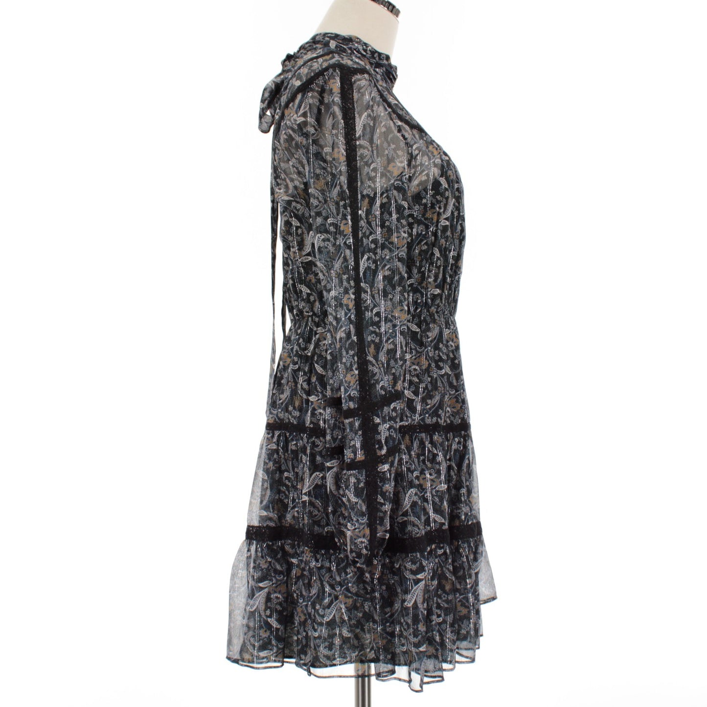 Veronica Beard NWT Rahla Long Sleeve Sheer Dress Size 6 in Black/Blue/Multi