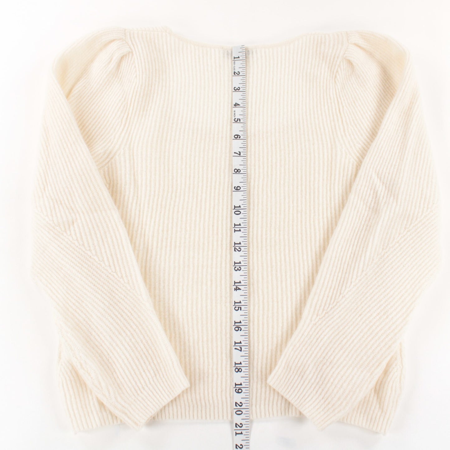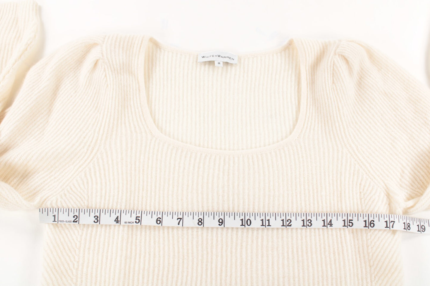 White + Warren NWOT Cashmere Sweater Puff Sleeves Size Medium in Solid Ivory