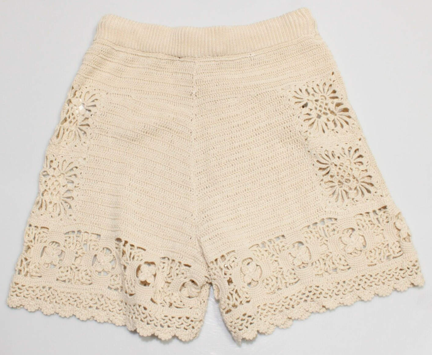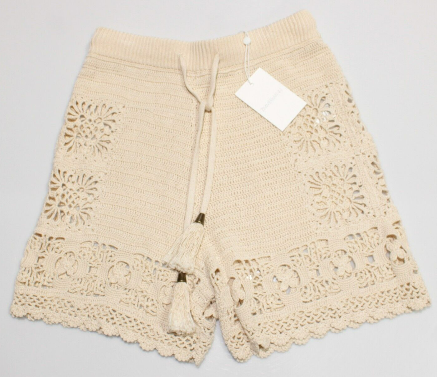 Zimmermann NWT Chintz Hand Crochet Casual Shorts Size 0 US 4 In Beige Cotton