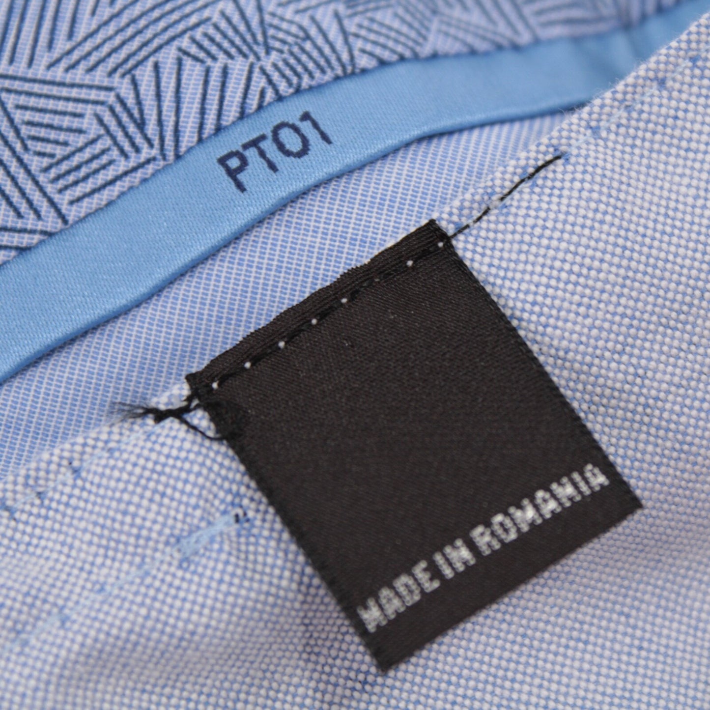 PT01 NWT Flat Front Casual / Dress Pants Size 46 30 US Solid Blue Linen Blend