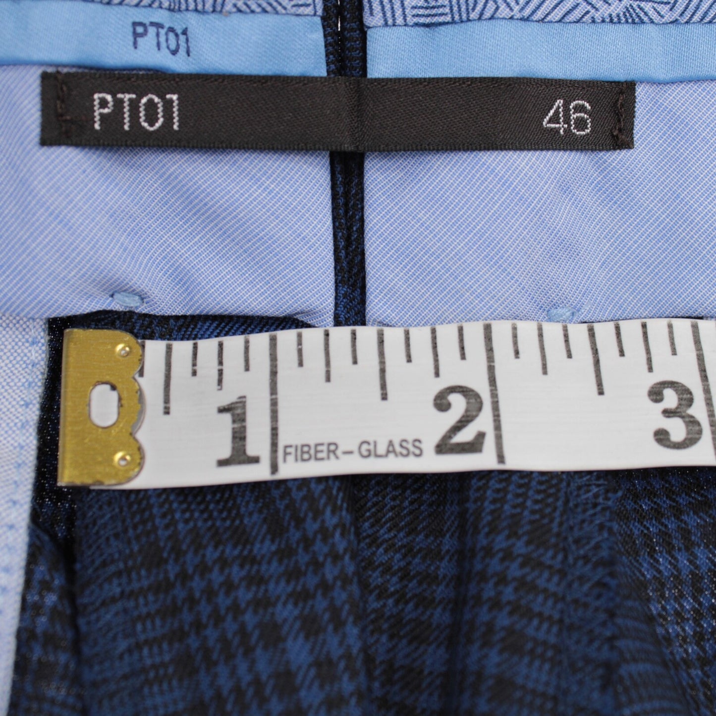 PT01 NWT Flat Front Dress Pants Size 46 30 US Blue Plaid 100% Wool