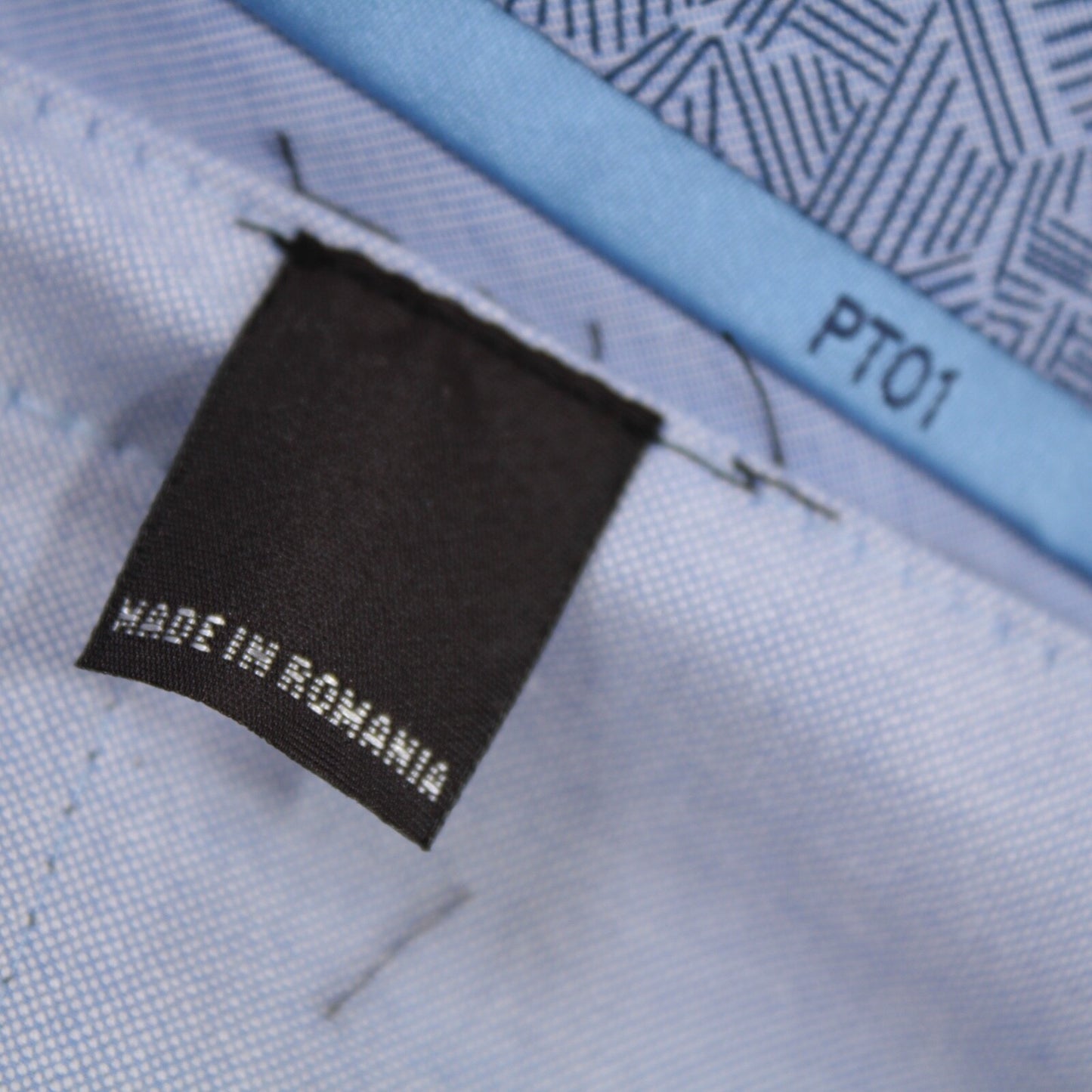 PT01 NWT Flat Front Dress Pants Size 58 42 US Gray & Blue Small Pattern Wool