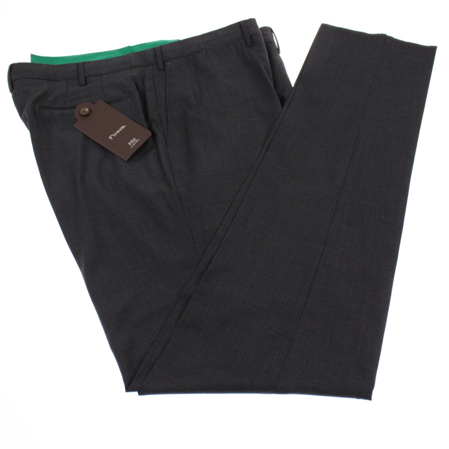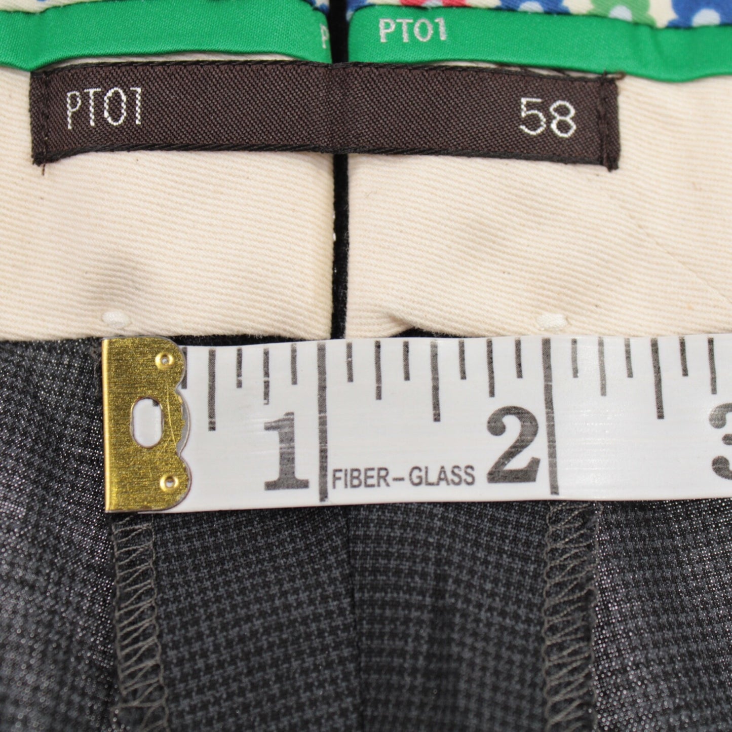 PT01 NWT Flat Front Dress Pants Size 58 42 US Gray Small Pattern Wool Blend