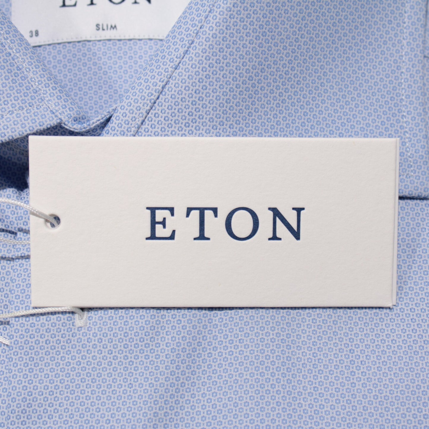 Eton NWT Dress Shirt Size 38 15 Slim Fit Blue / White Mini Pattern 100% Cotton