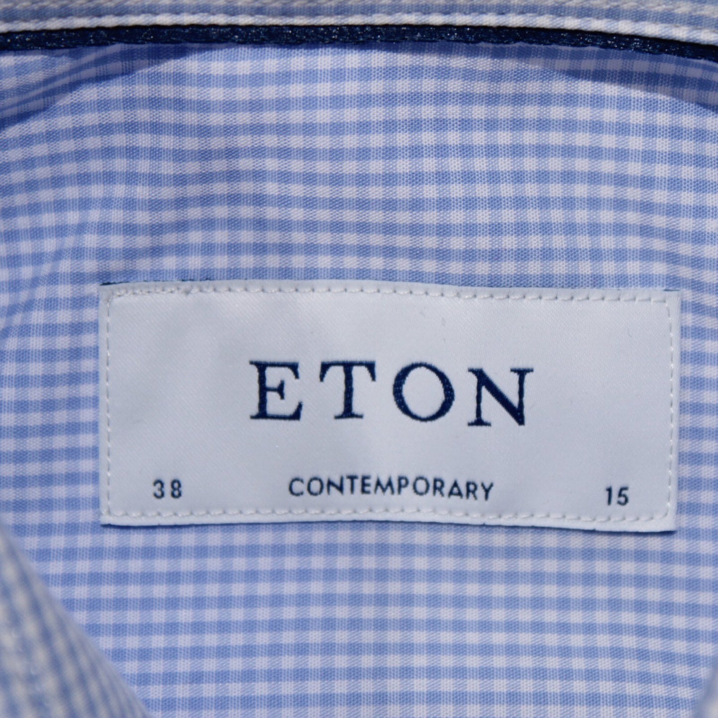 Eton NWT Dress Shirt Sz 38 15 Contemporary Fit in Blue & White Check 100% Cotton