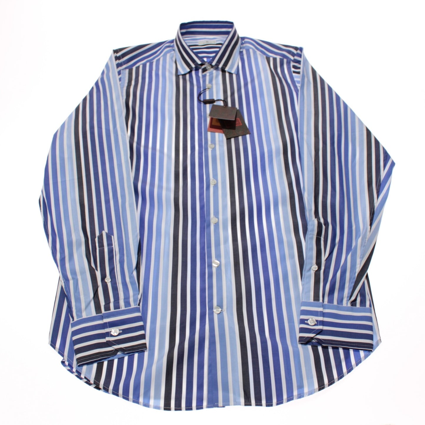 Etro NWT Dress Shirt Size 41 L US In Blue & White Striped 100% Cotton