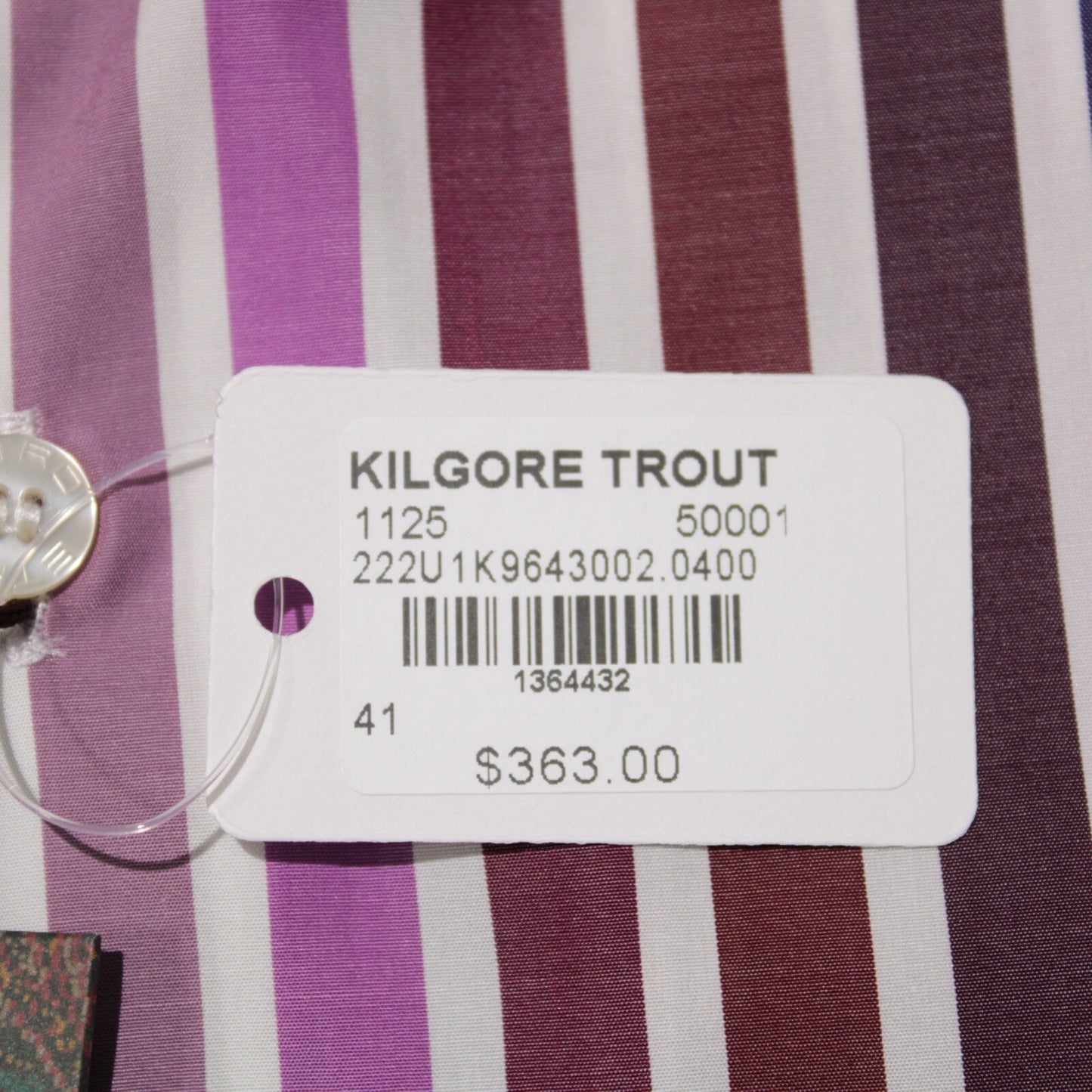 Etro NWT Dress Shirt Size 41 L US In Purples Red & White Striped 100% Cotton