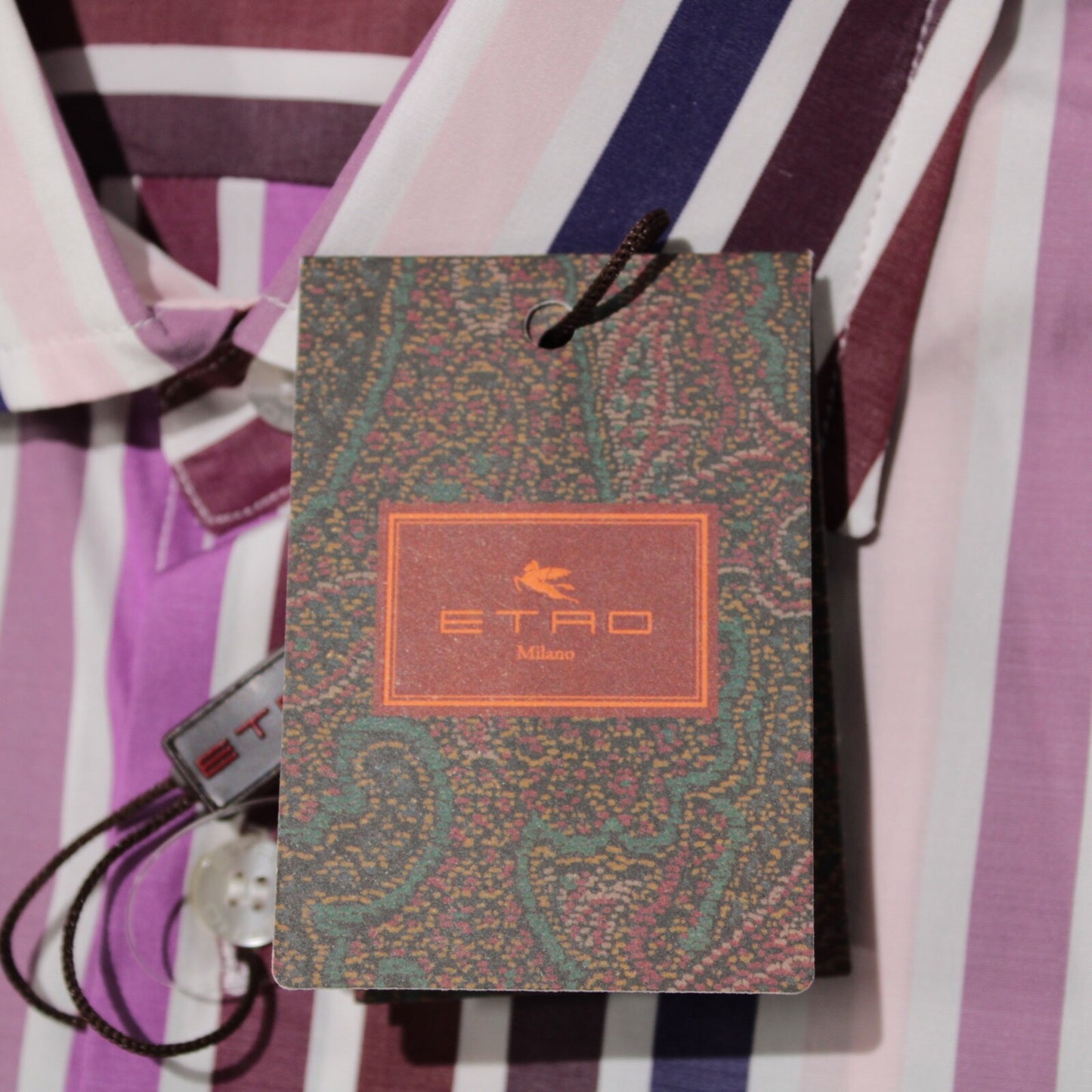 Etro NWT Dress Shirt Size 43 XL US In Purples & White Striped 100% Cotton
