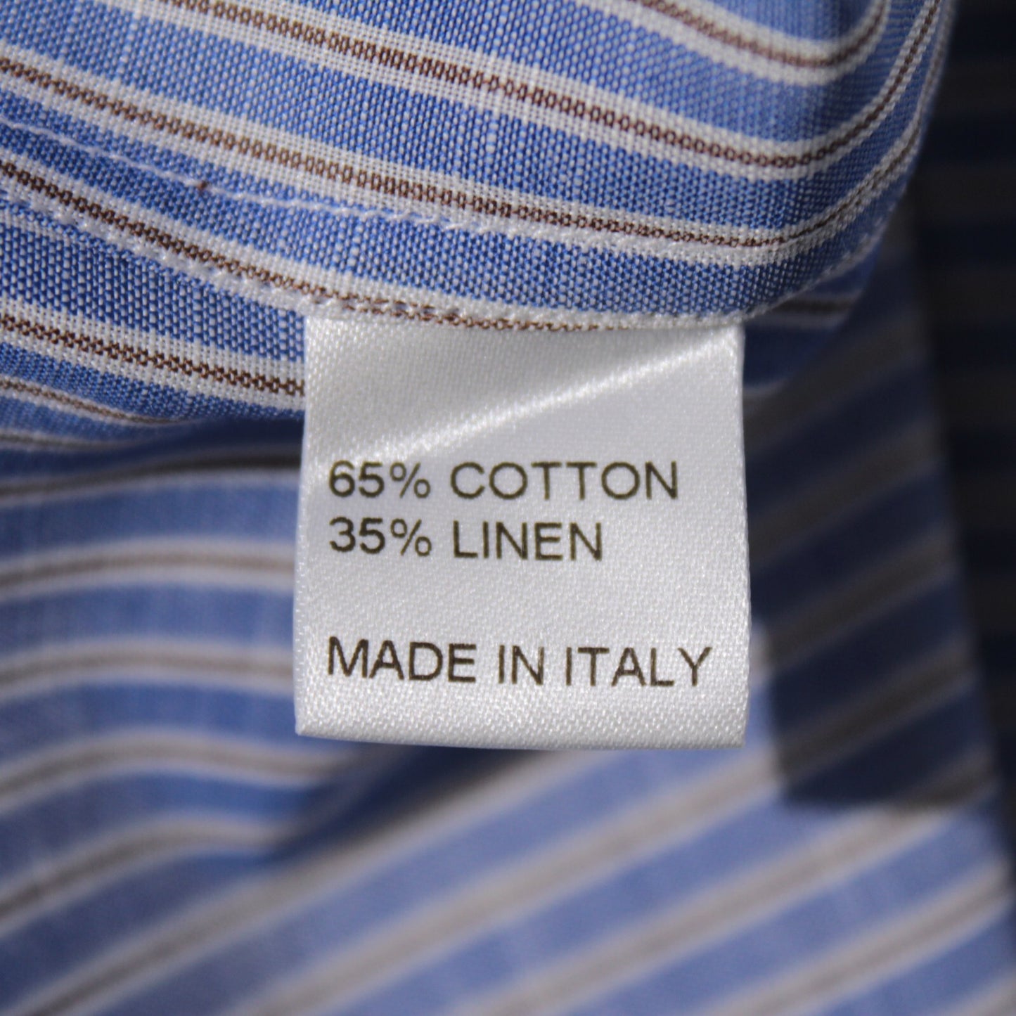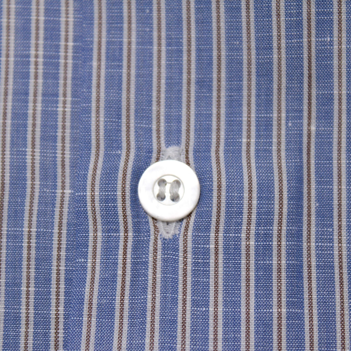 Fray NWT Dress Shirt Size 16 41 in Blue/Brown/White Stripes Cotton & Linen Blend