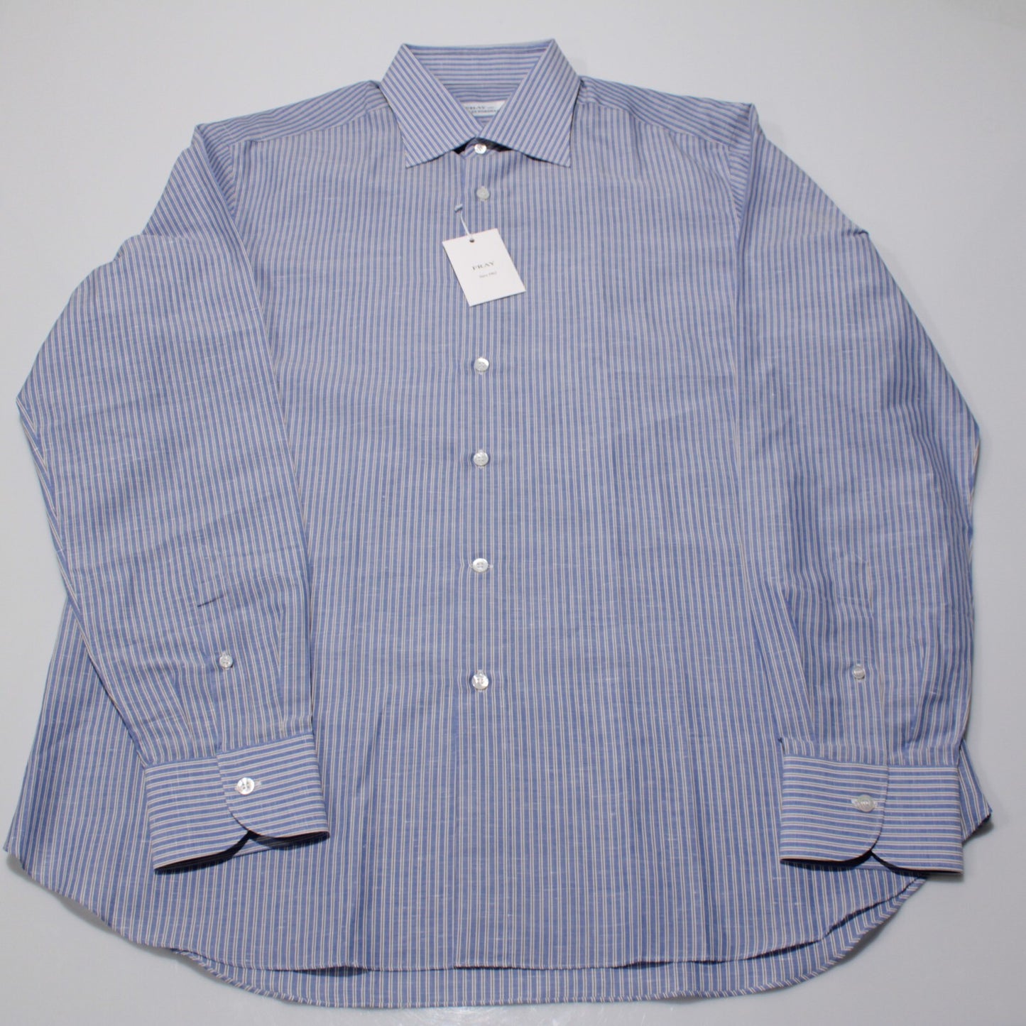 Fray NWT Dress Shirt Size 17.5 44 in Blue/Brown/White Stripes Cotton/Linen Blend