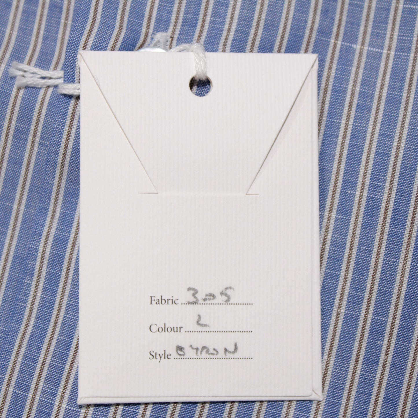 Isaia NWT Dress Shirt Size 17.5 44 in Blue & White Stripes Cotton & Linen Blend