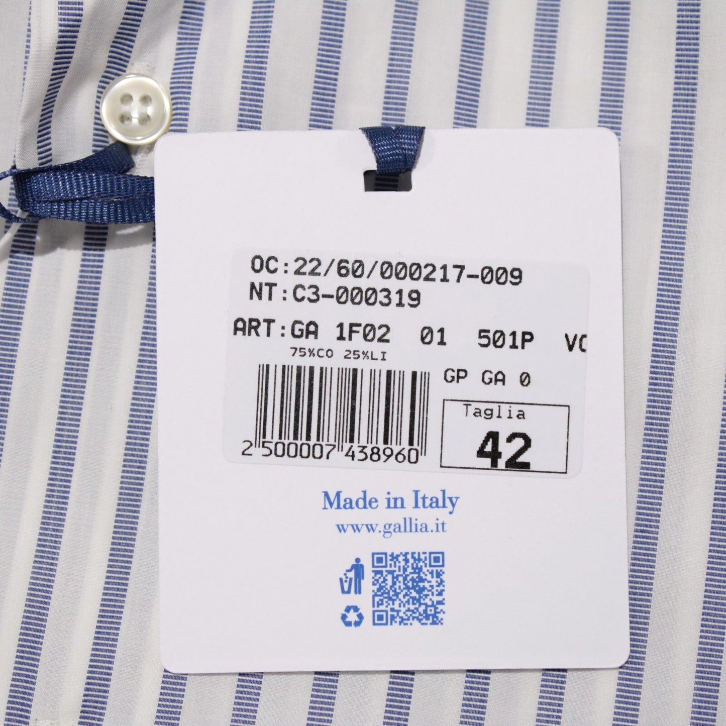 Gallia NWT Dress Shirt Size 42 16.5 White w/ Blue Stripes Cotton & Linen Blend
