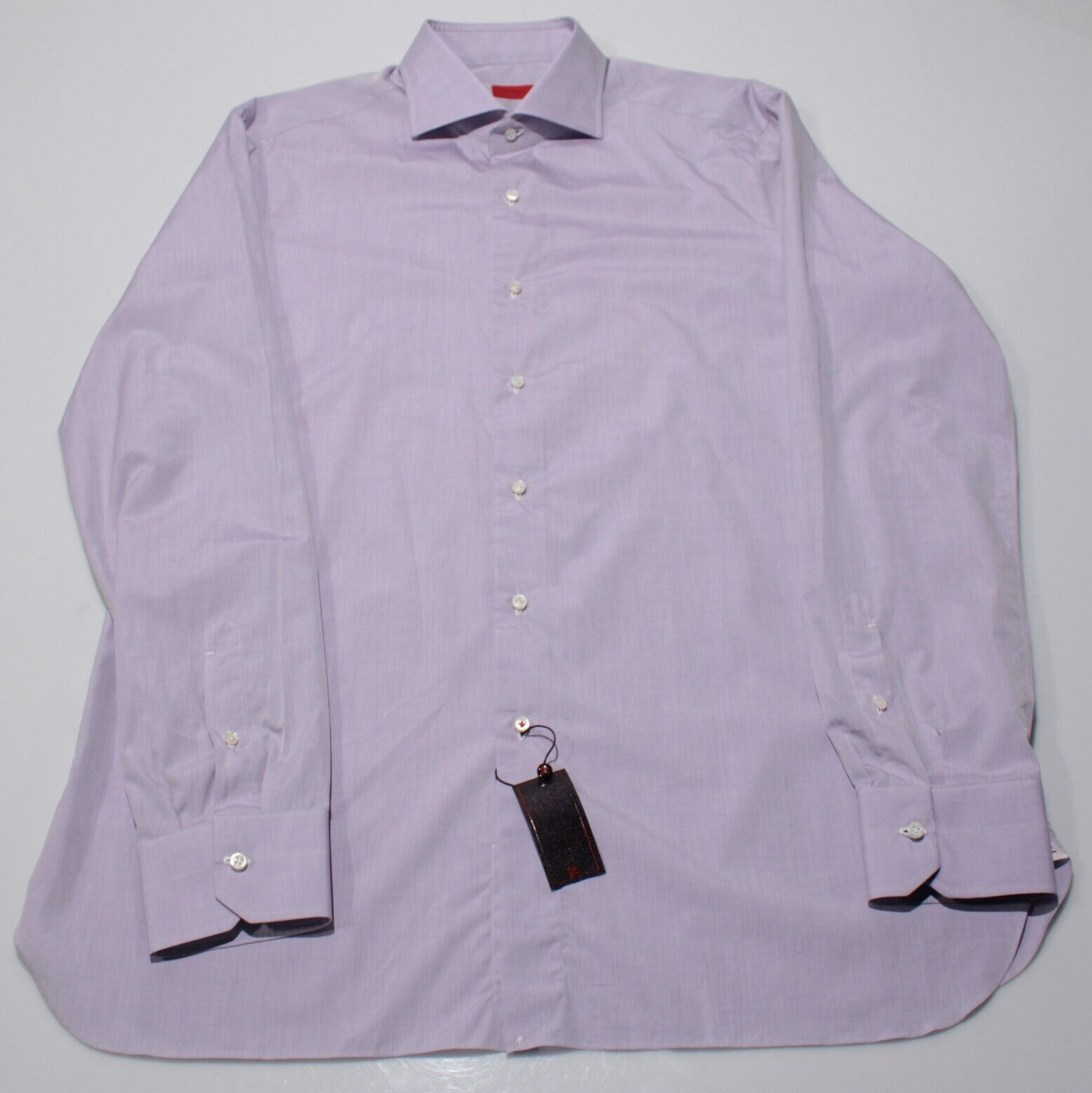 Isaia NWT Dress Shirt Size 17.5 44 in Solid Purple 100% Cotton Made in Italy
