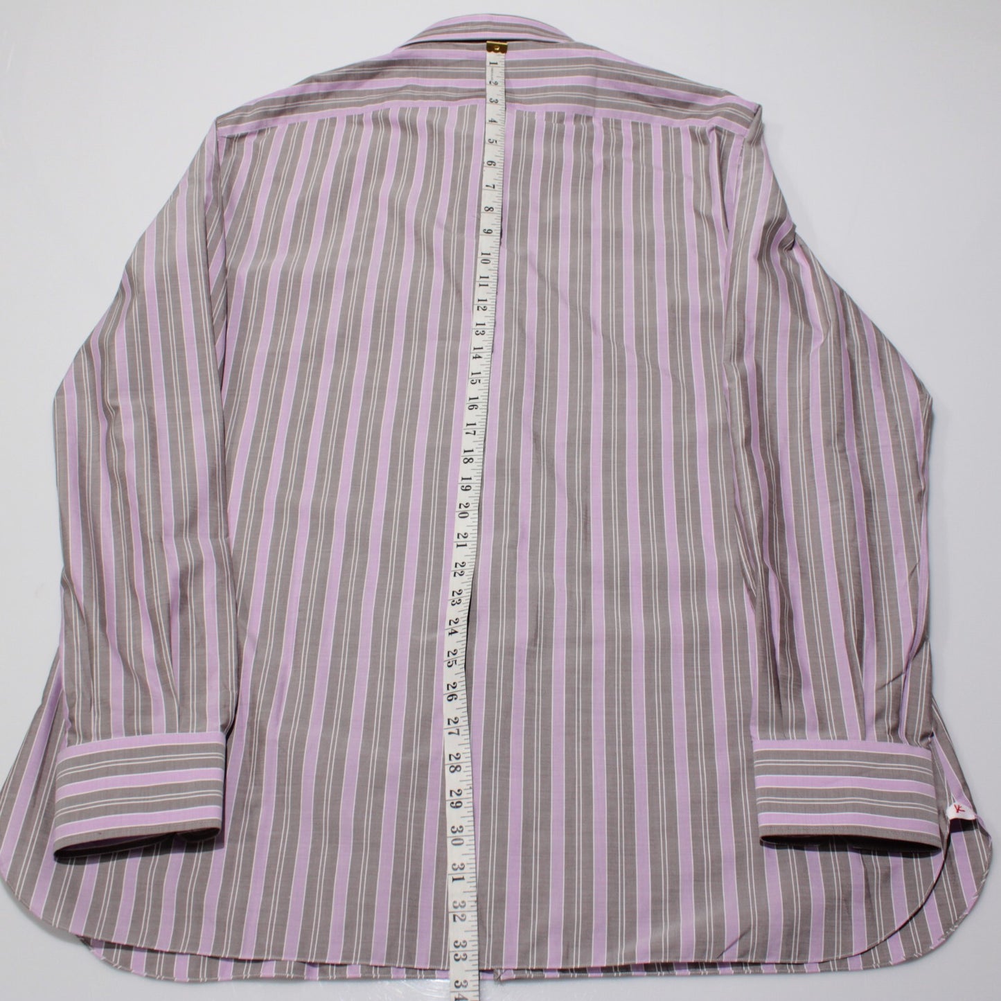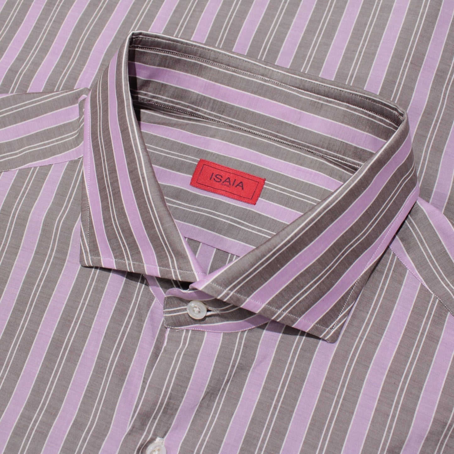 Isaia NWT Dress Shirt Size 46 18.5 in Purple/Brown/White Stripes 100% Cotton