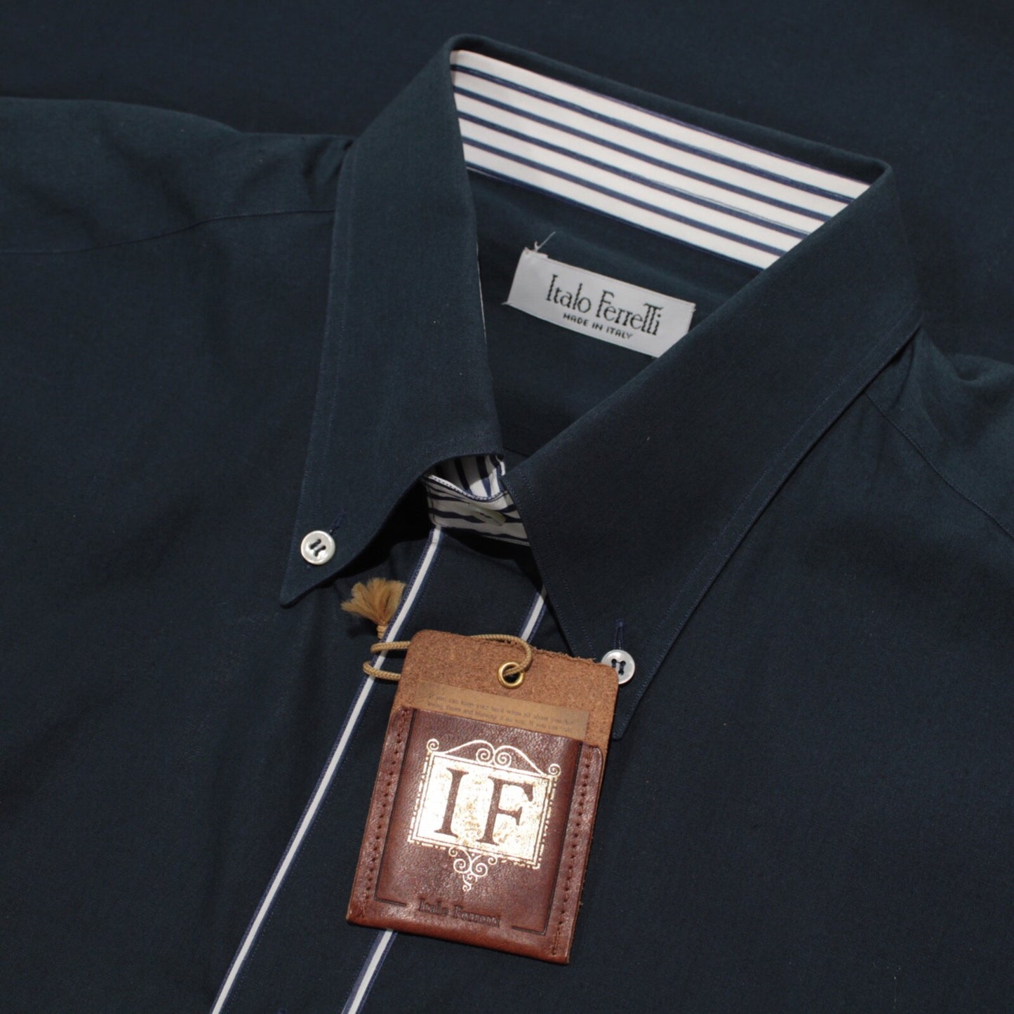Italo Ferretti NWT Dress Shirt Size 16 41 US In Solid Blue 100% Cotton