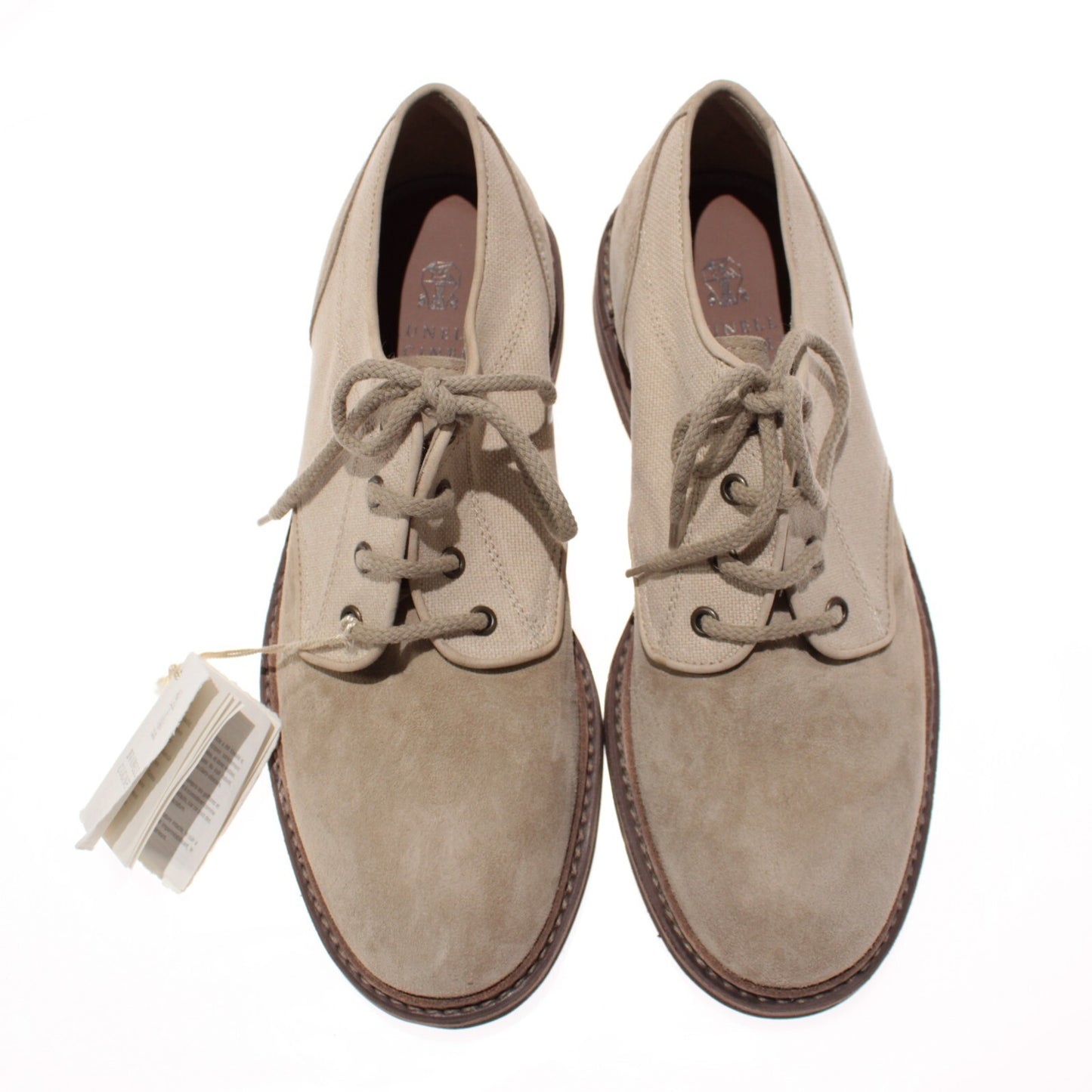 Brunello Cucinelli NWB Suede/Canvas Lace Up Derby Shoes Size 42 / 9 US Beige