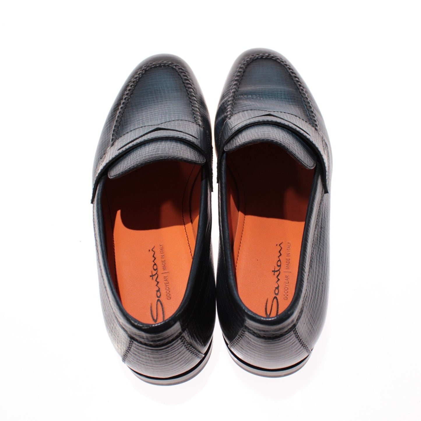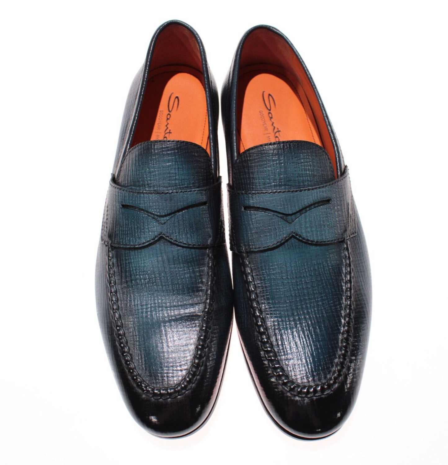 Santoni NWB Door Loafers Size 11 US 12 in Blue Leather Made in Italy