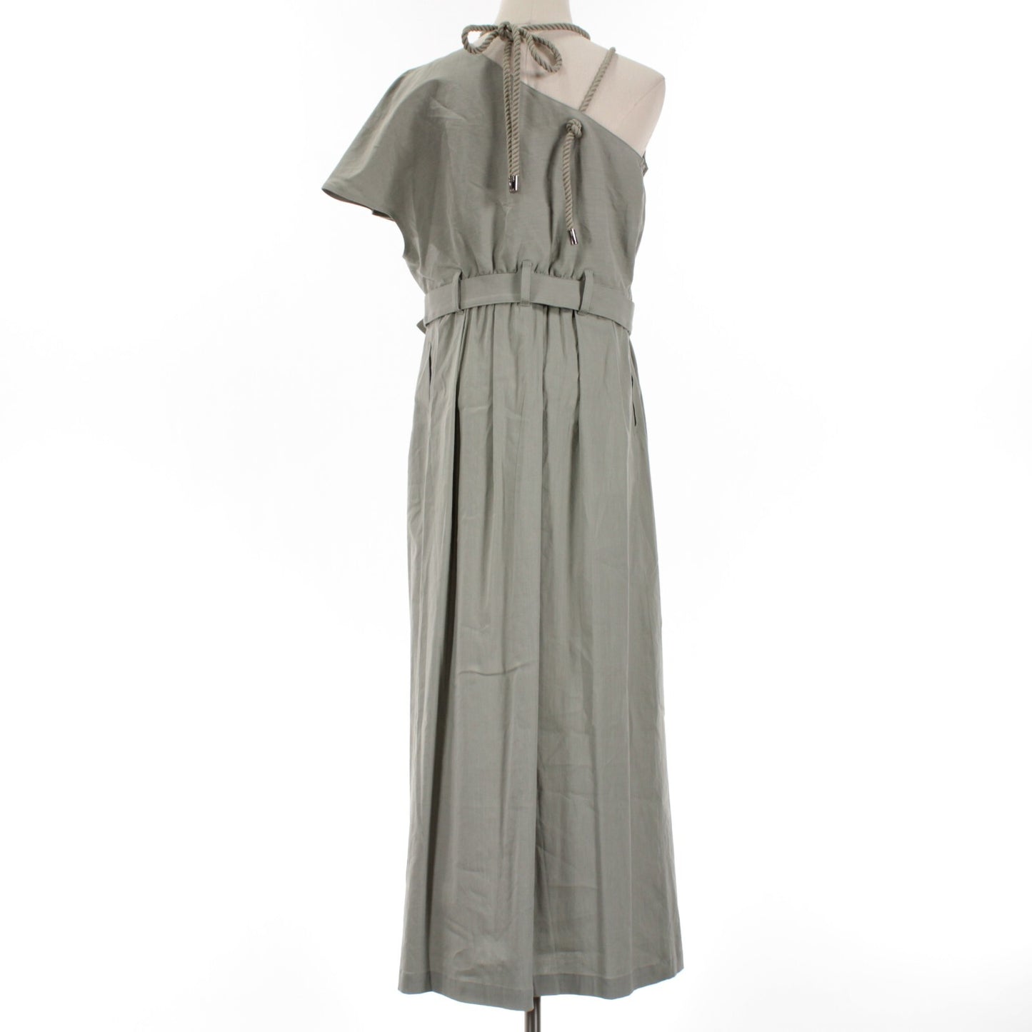 Akiranaka NWT Asymmetric Belted Midi Shirt Dress Size 3 US M Green Linen Blend