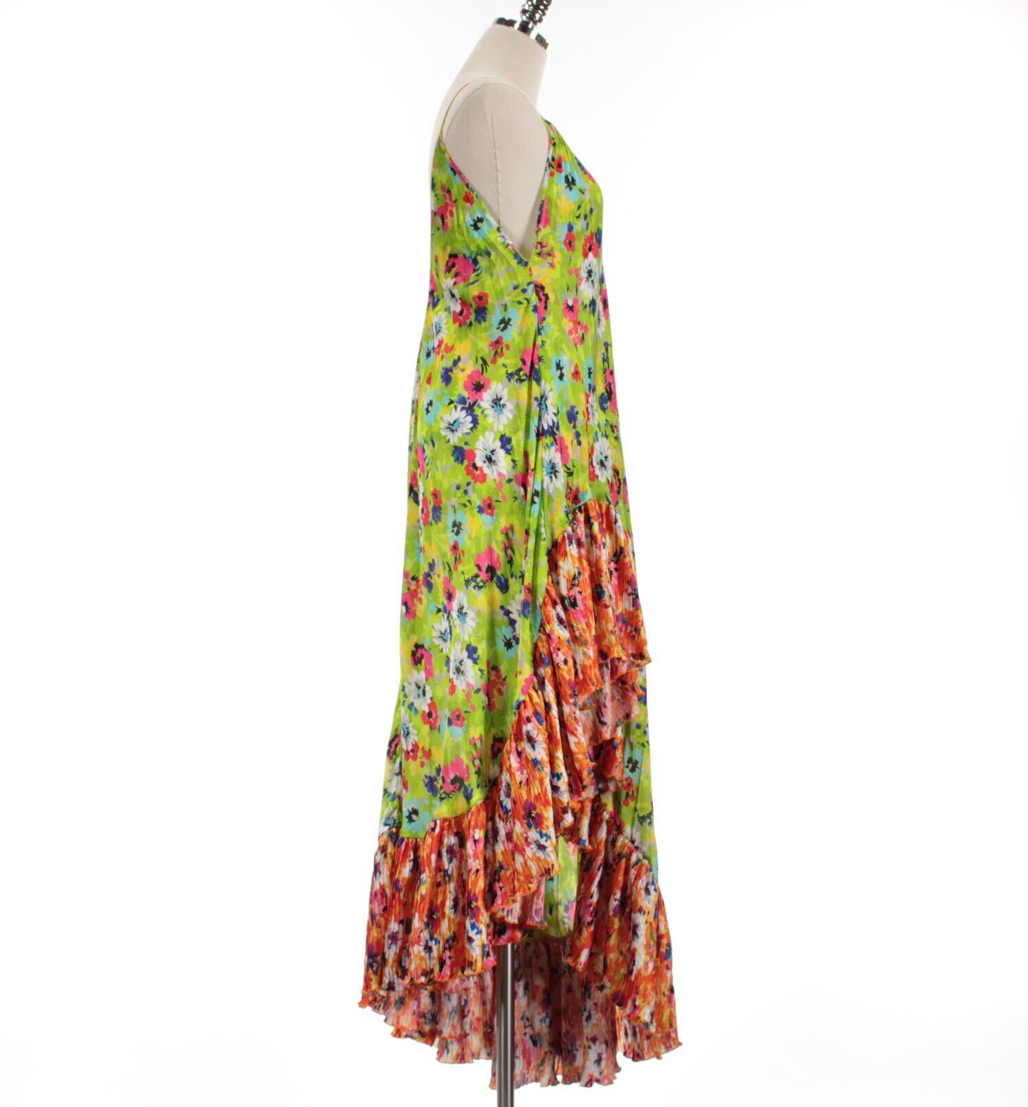 MSGM NWT V-Neck Asymmetrical Ruffle Dress Size 40 US 6 in Green/Multi Floral
