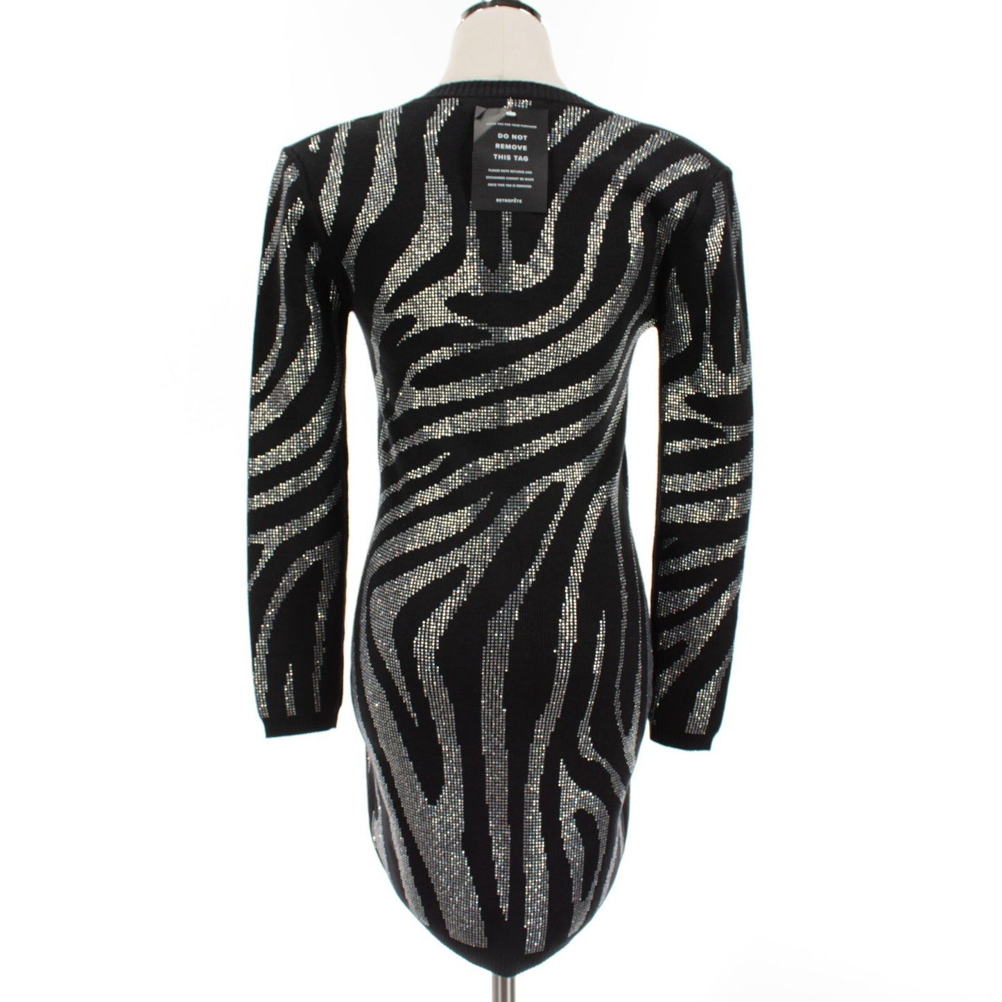 Retrofete NWT Elvira Knit Dress Size Small Black/Silver Zebra Print w/ Crystals