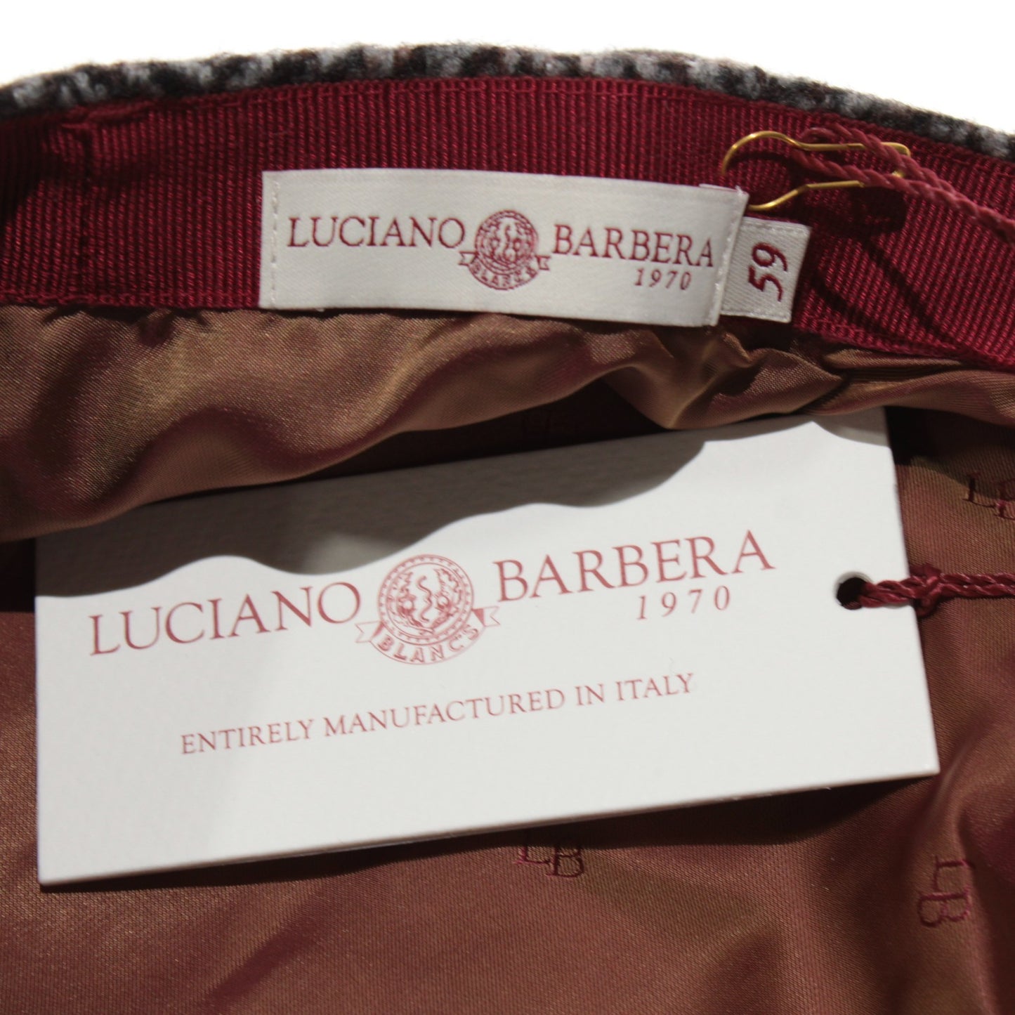 Luciano Barbera NWT Newsboy Cap / Hat Size 59 in Gray / Brown Plaid Wool Blend