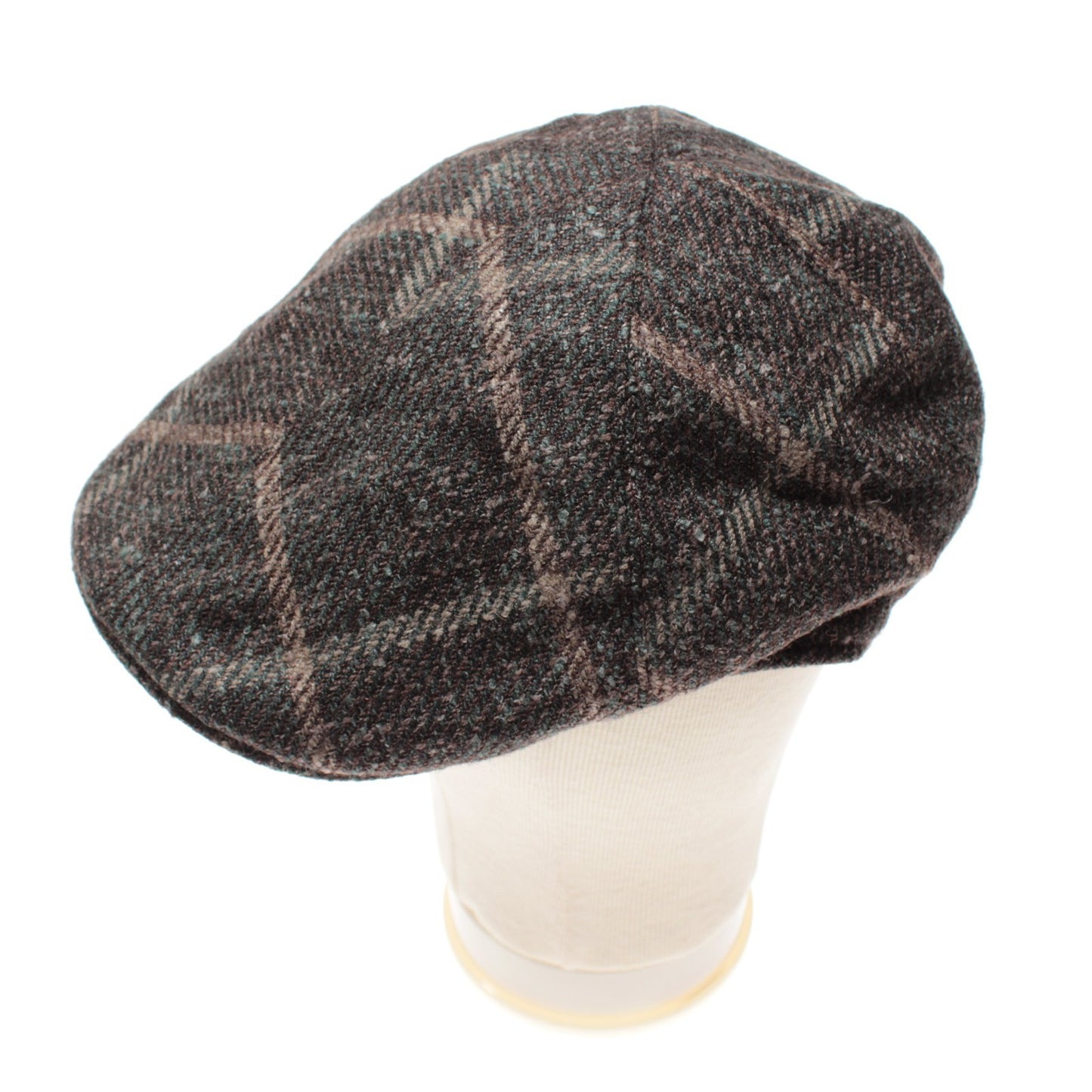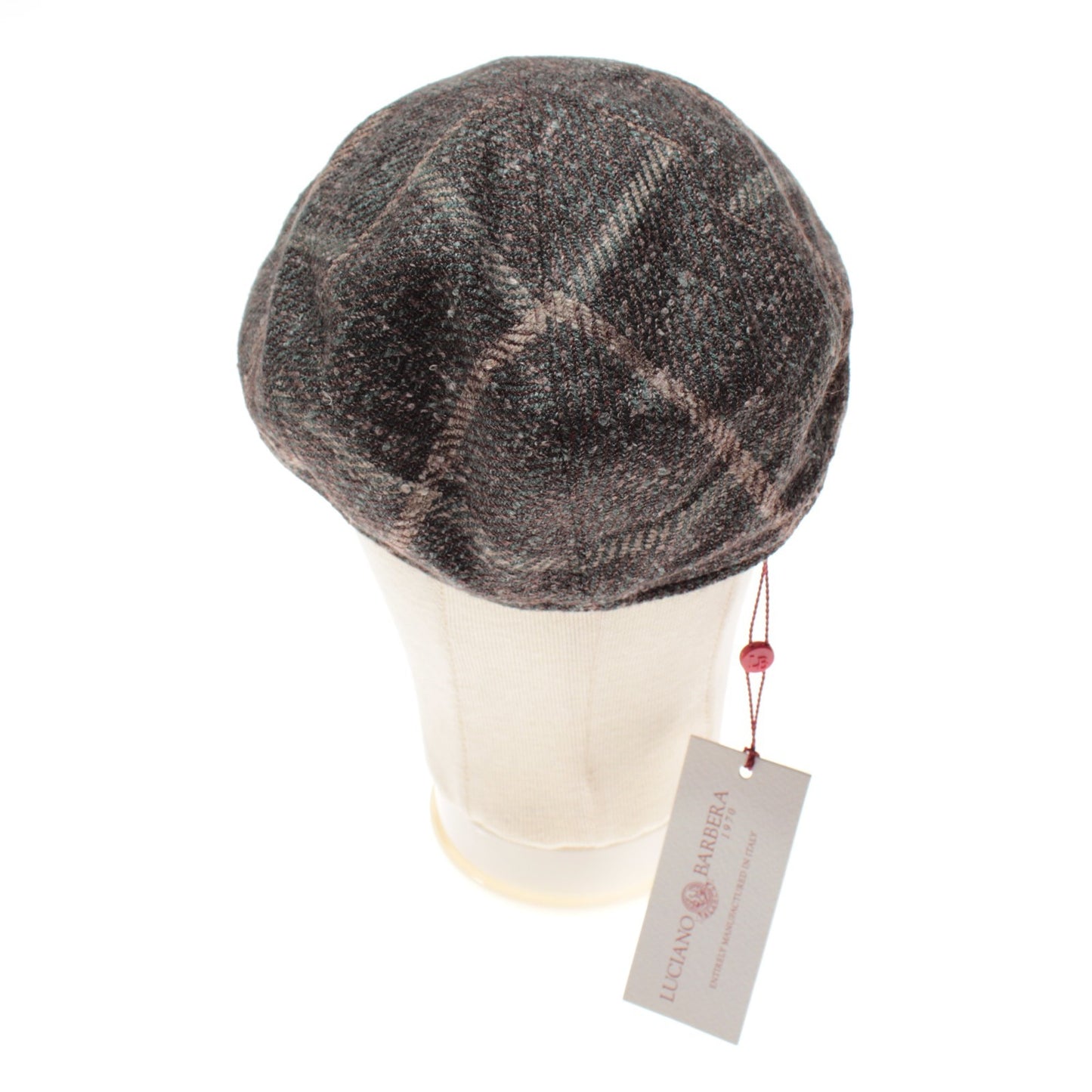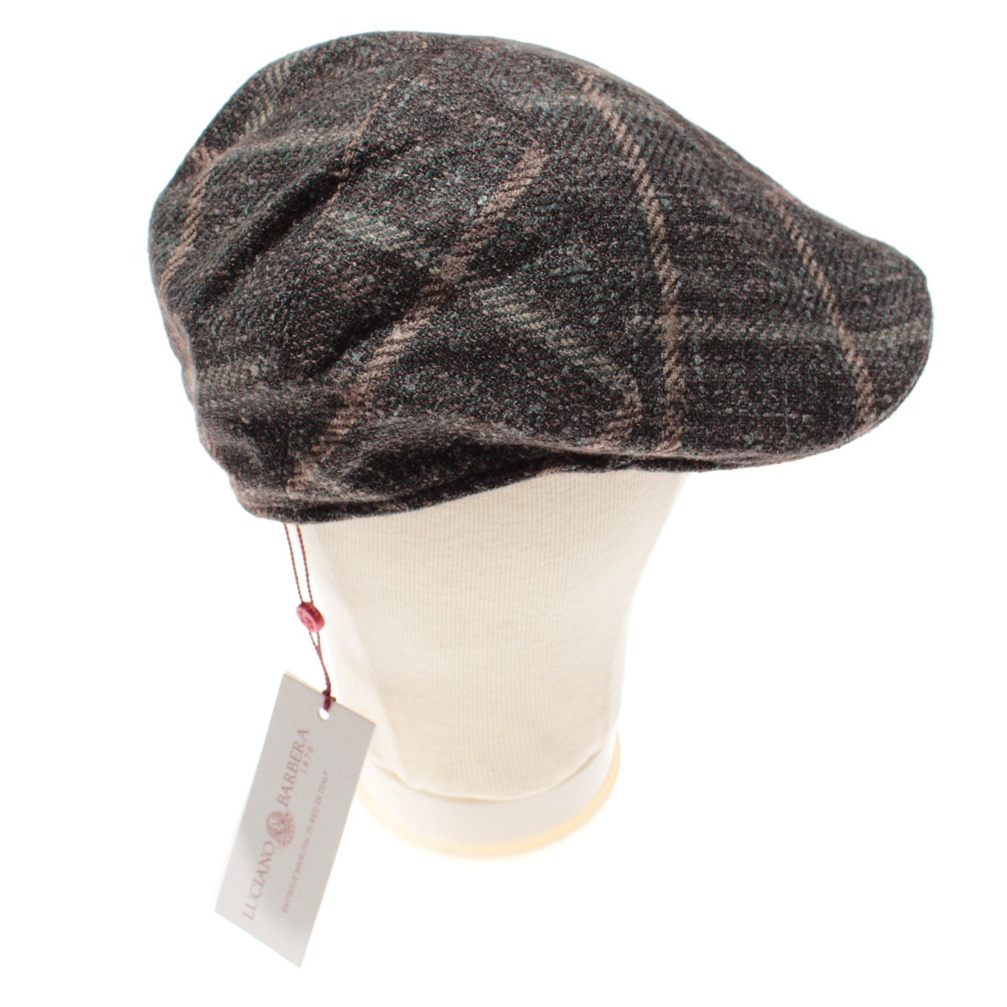 Luciano Barbera NWT Newsboy Cap / Hat Size 59 in Gray / Brown Plaid Wool Blend