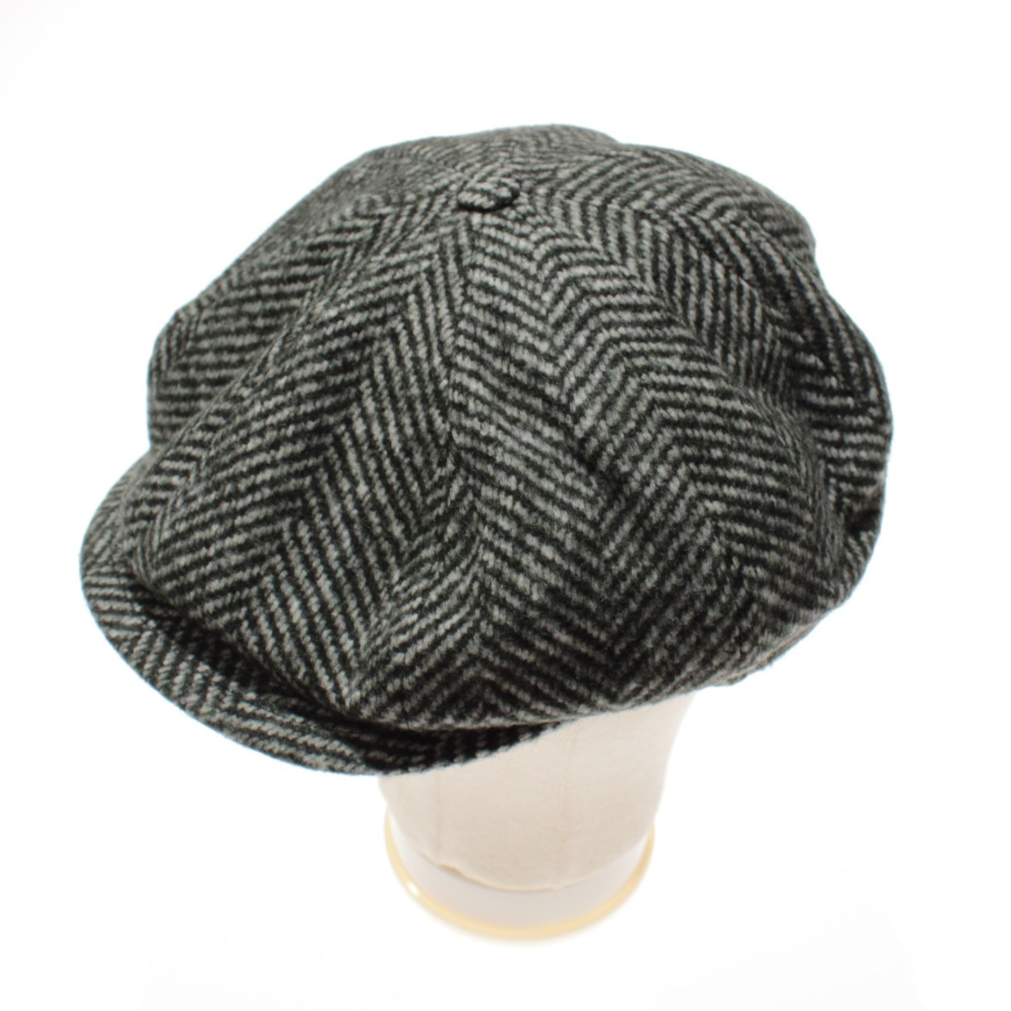 Wigens NWT Pub Newsboy Cap / Hat Size 59 Burgundy / Black Herringbone Wool Blend