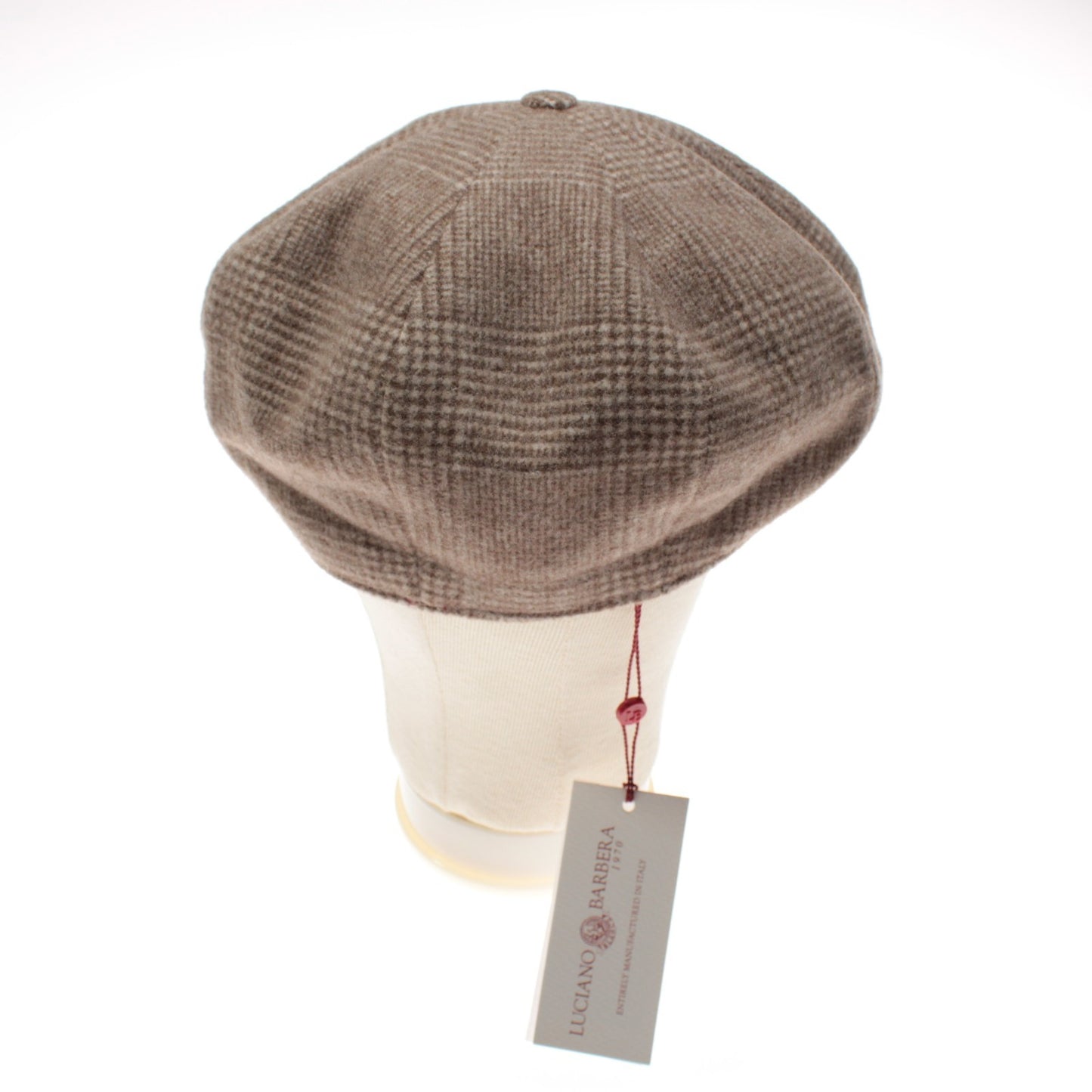 Luciano Barbera NWT Newsboy Cap / Hat Size 59 in Light Brown Plaid 100% Wool