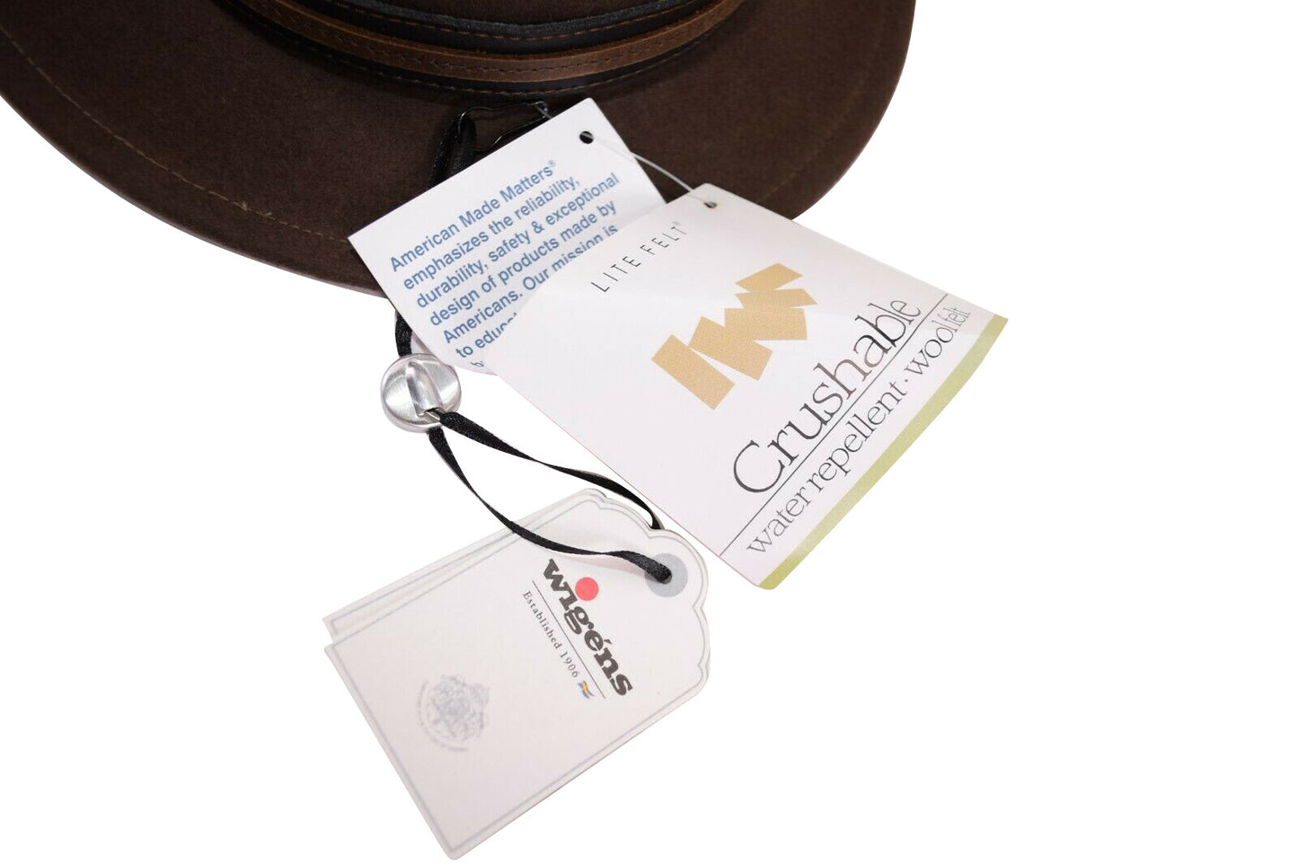 Wigens NWT 100% Wool Brown Crushable Felt Fedora Size M 58, 7 & 1/4th