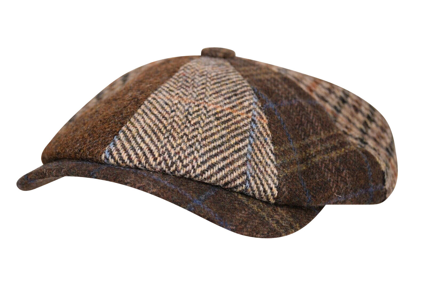 Wigens NWT 100% Wool Newsboy in Brown Patchwork Size 56, 7