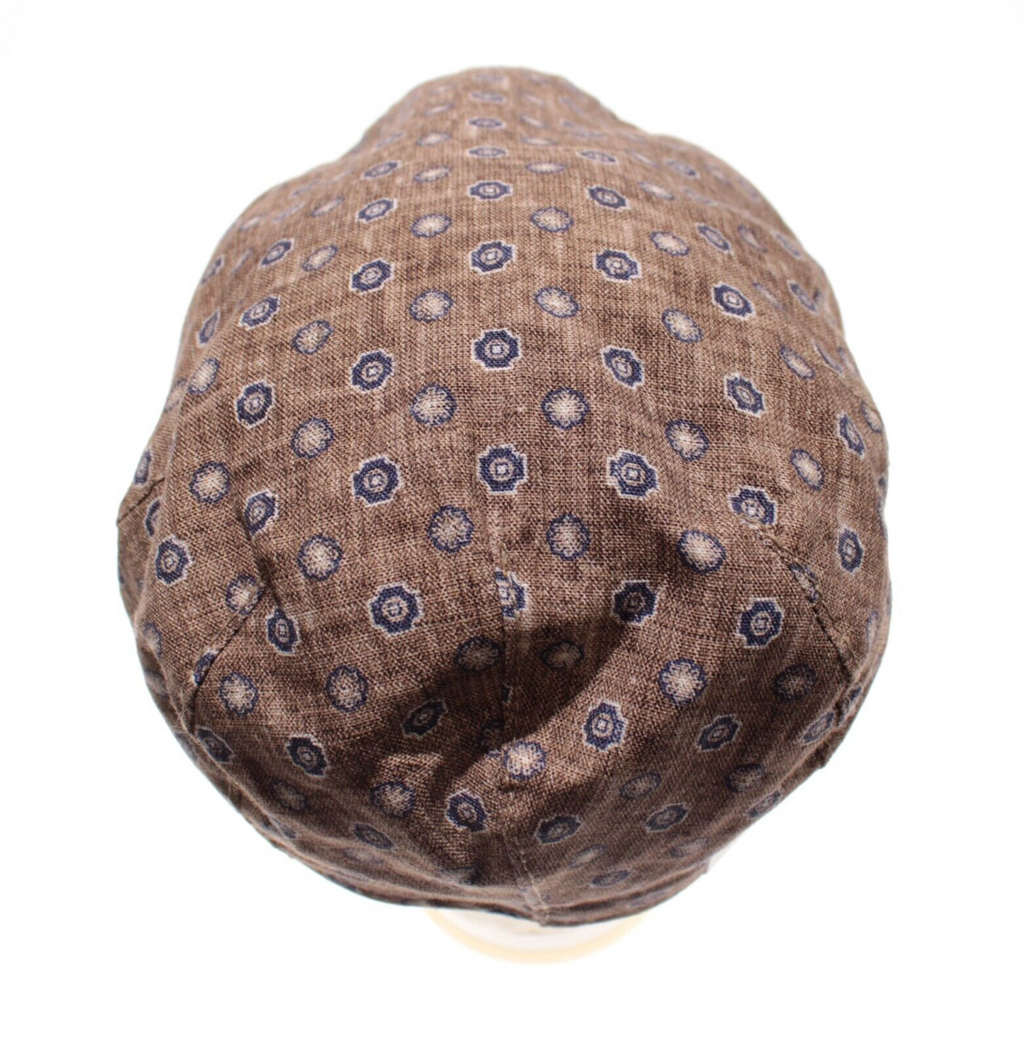 Wigens NWT Ivy Newsboy Cap Size 59, 7 & 3/8ths Brown/Blue Pattern Cotton & Linen