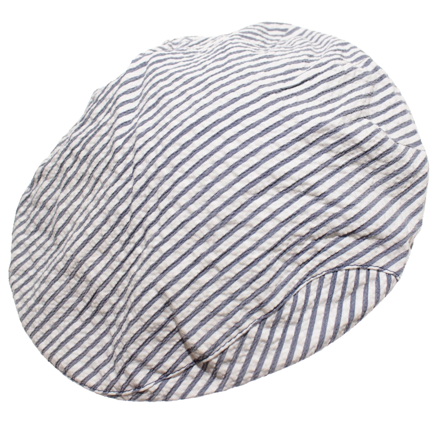 Wigens NWT Ivy Slim Newsboy Cap / Hat Size 60 White w/ Blue Stripes Cotton Blend