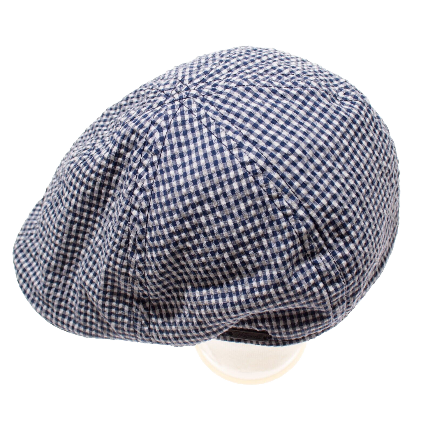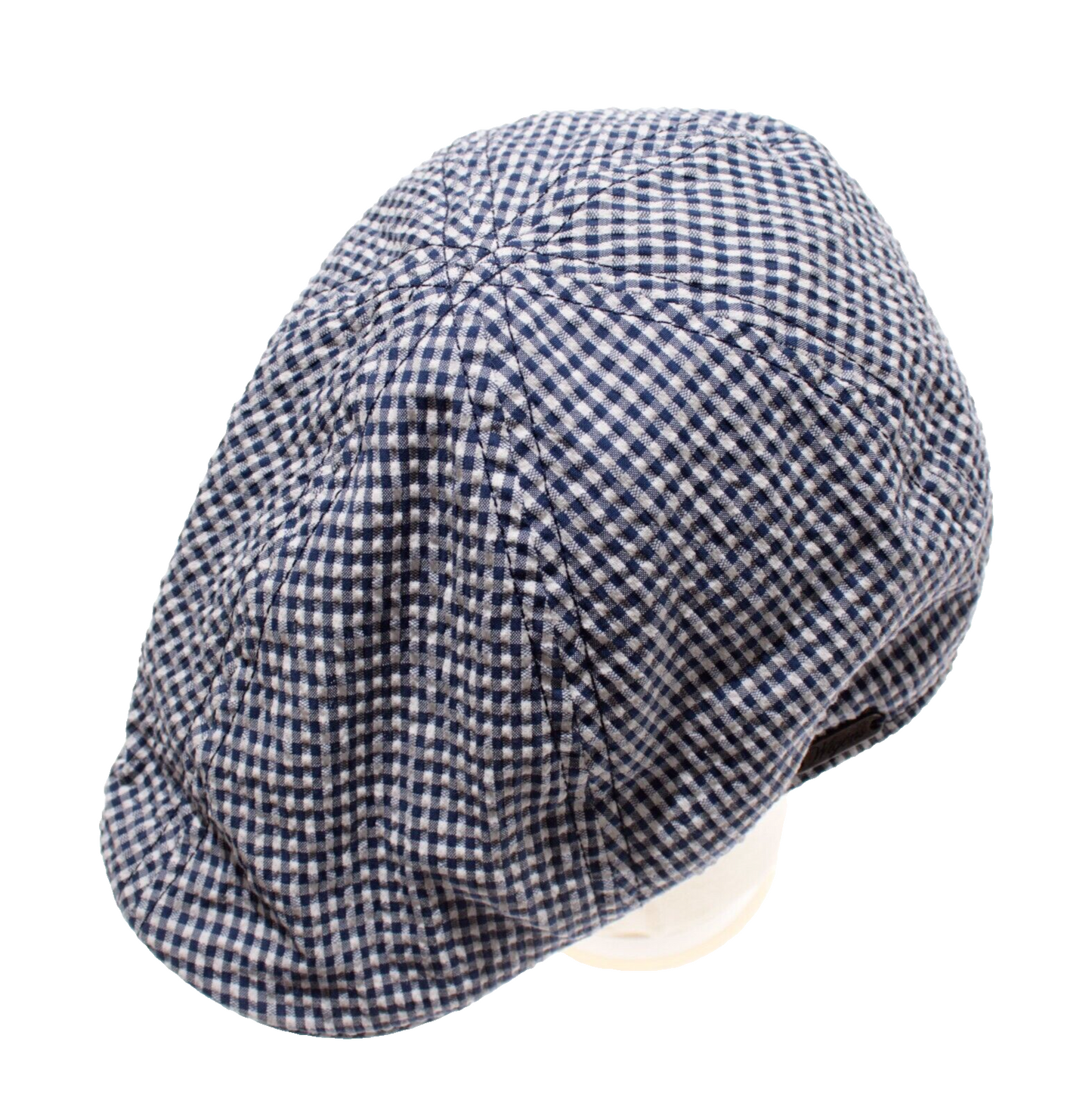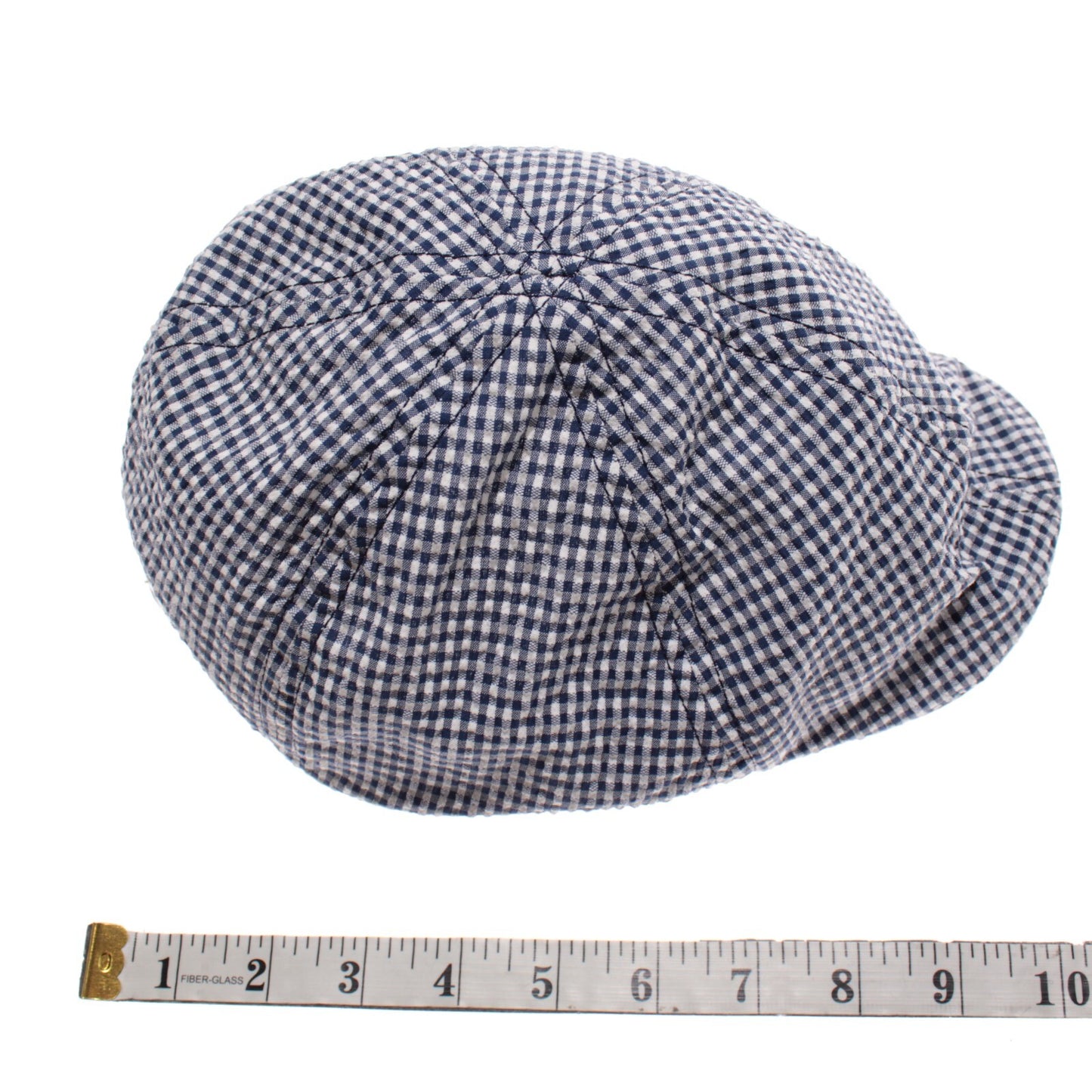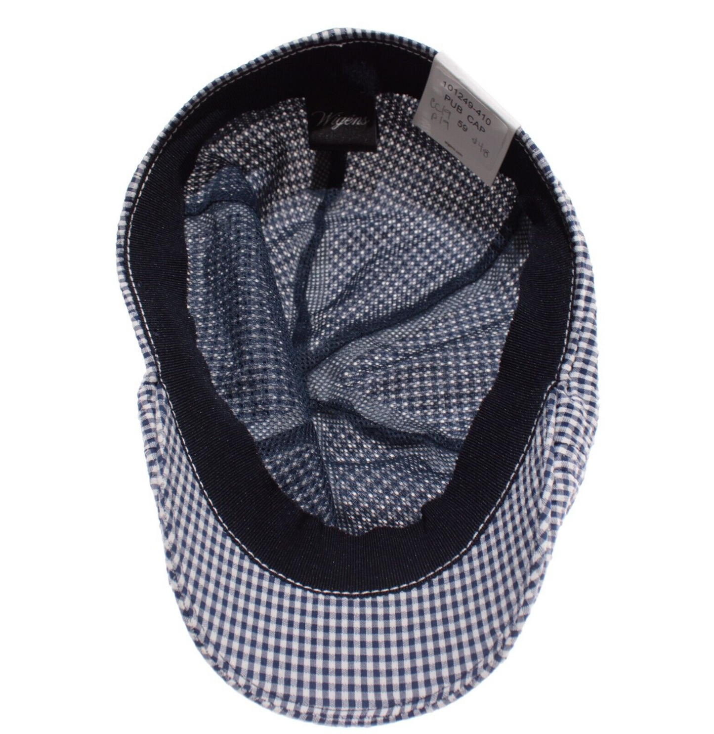Wigens NWT Pub Newsboy Cap Size 59, 7 & 3/8th Blue/White Mini Check Cotton Blend