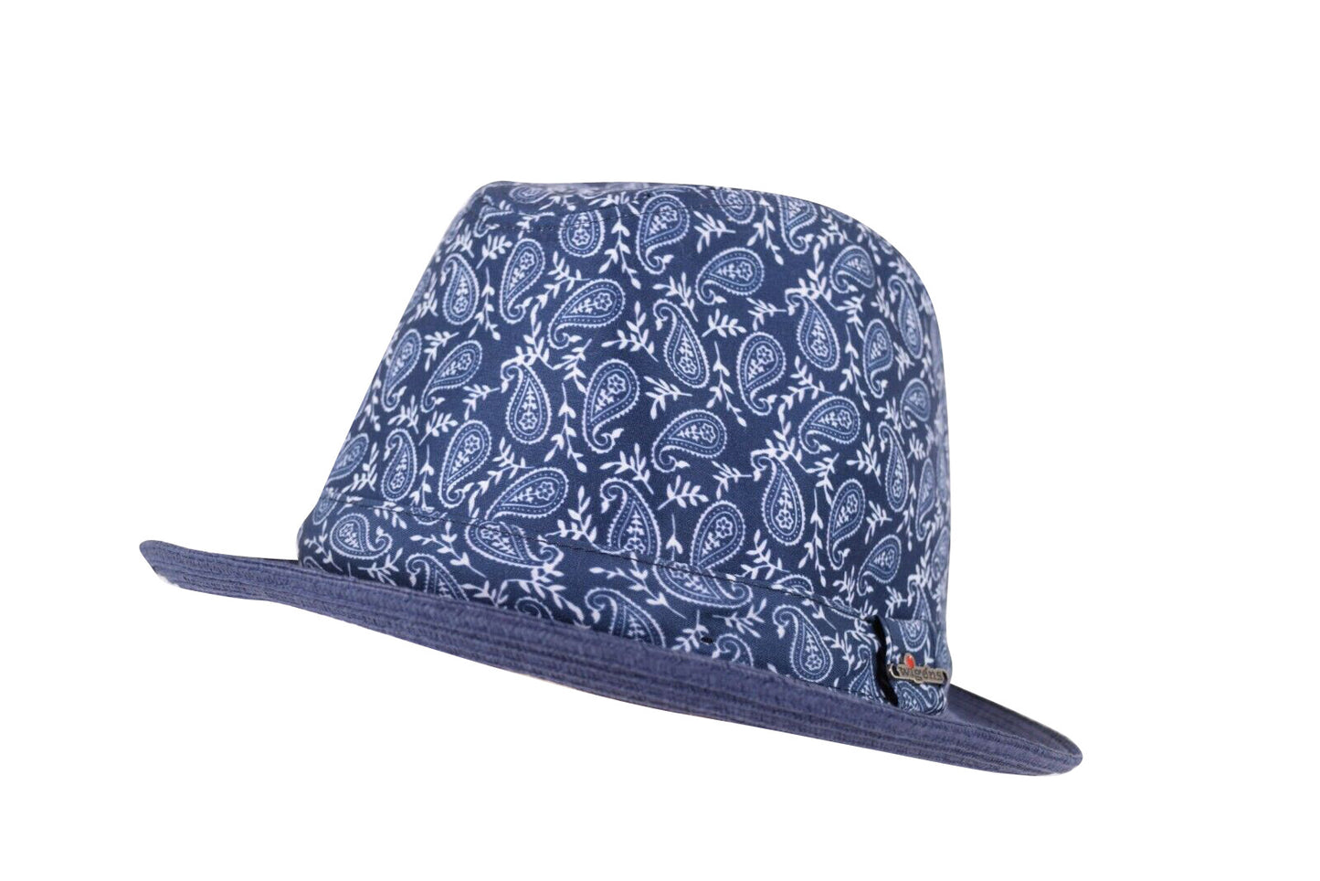 Wigens NWT Trilby Hat in Navy w/ Blue & White Paisley Size M, 58, 7 & 1/4th