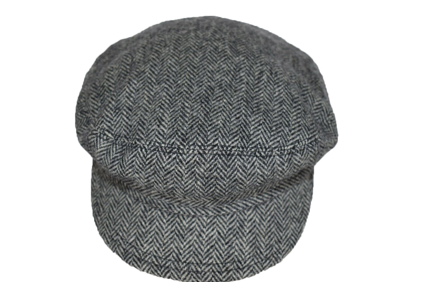 Amanda Christensen By Wigens NWT Fiddler Cap Sz 56, 7 US Gray Black Herringbone