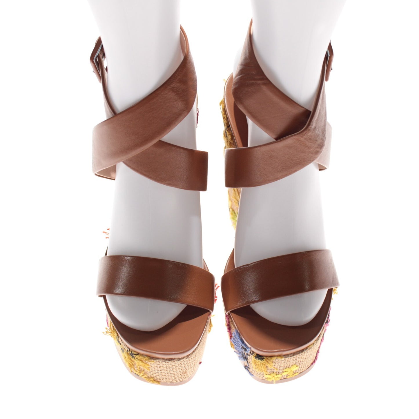 AGL NWB Holly H Embroidered Wedge Leather Sandals Size 37 US 7 in Brown/Multi