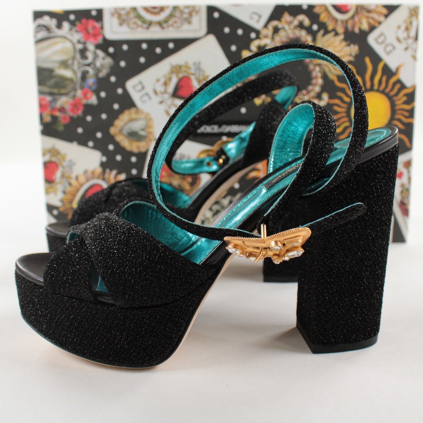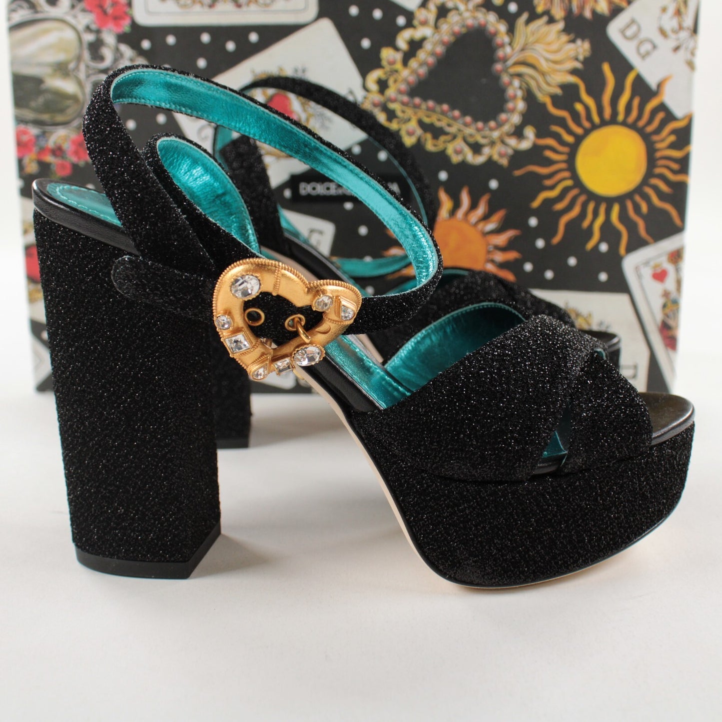 Dolce&Gabbana NWB Heels / Sandals Size 35.5 5.5 US Black With Gold Heart Broach