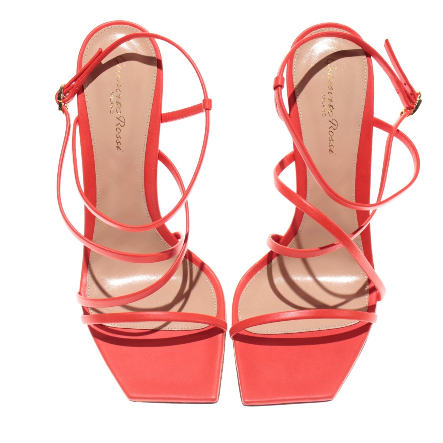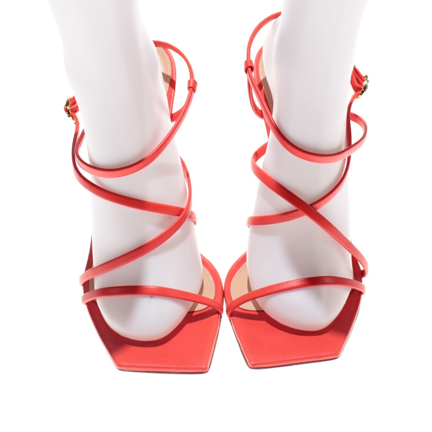 Gianvito Rossi NWB Manilla Strappy Heels Size 40.5 US 10.5 Poppy (Orangey Red)