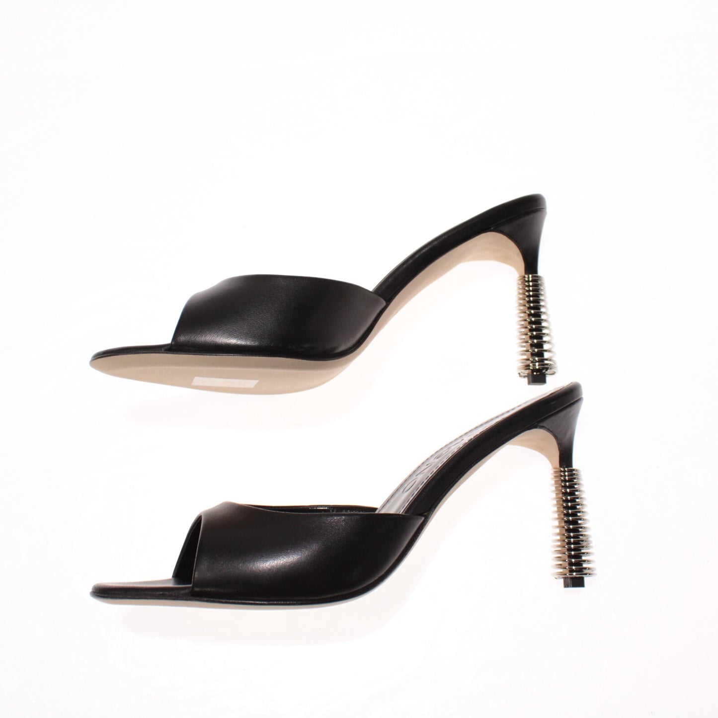 Ricagno NWB Yira Peep Toe Mules / Heels Size 41 (US 11) in Solid Black Leather