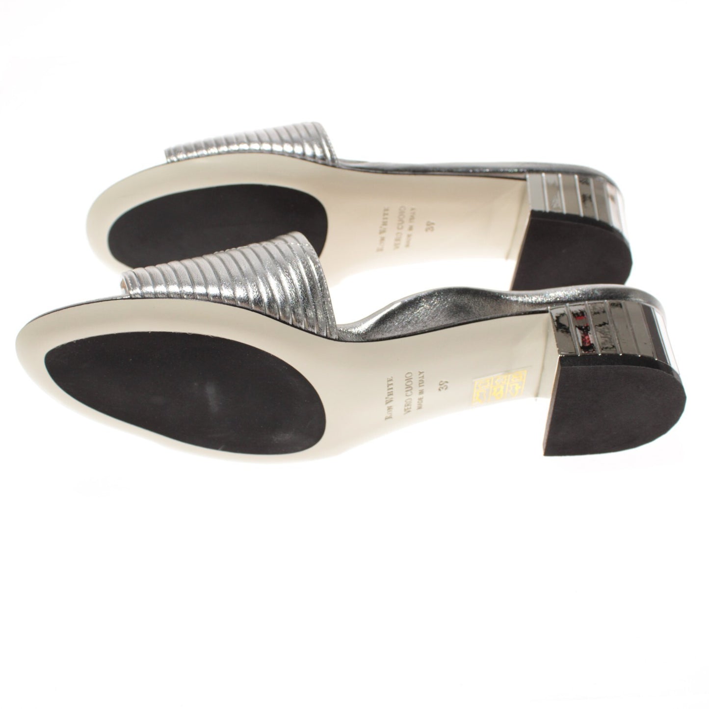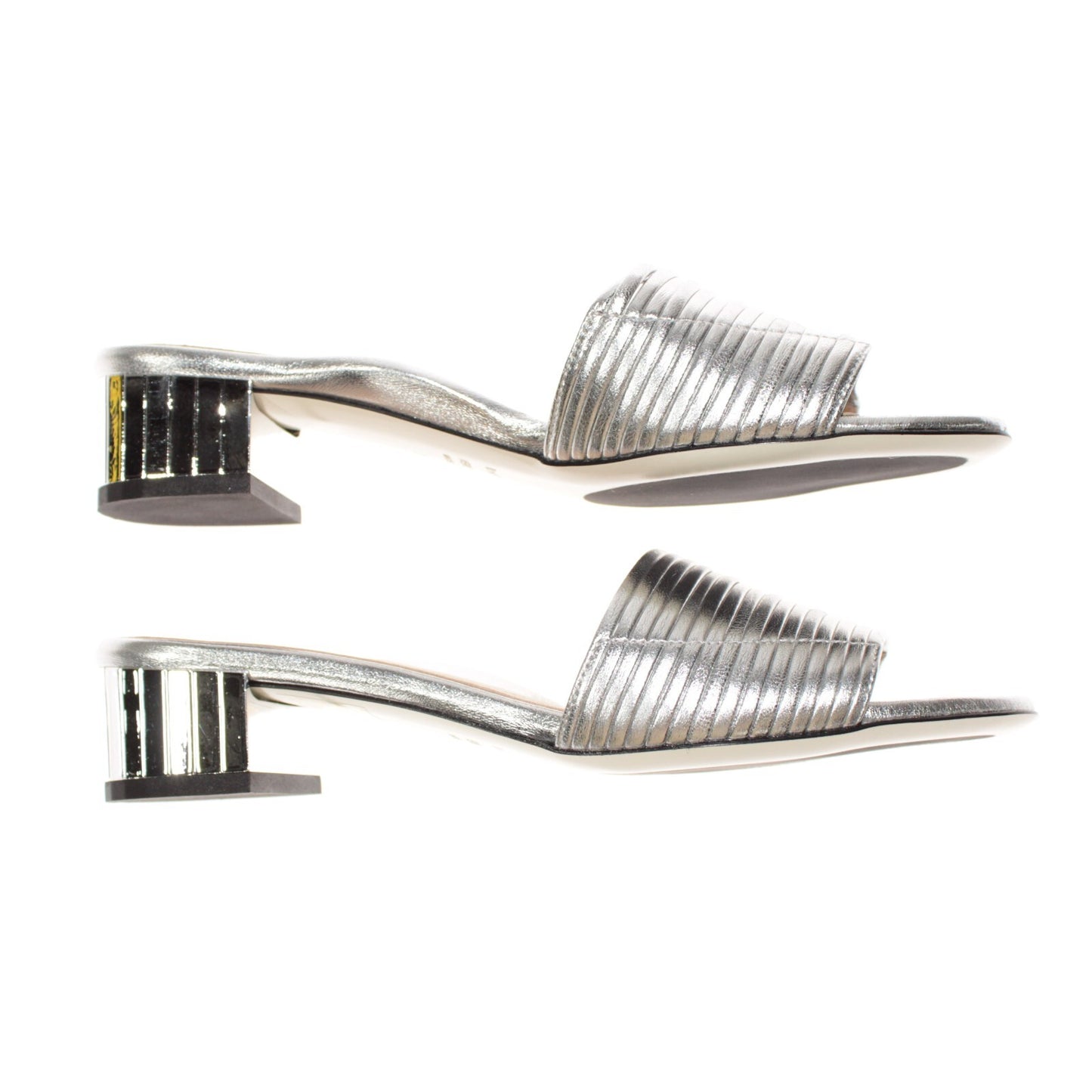 Ron White NWB Evena Slip On Sandals Size 39/8.5 US Metallic Silver w Mirror Heel