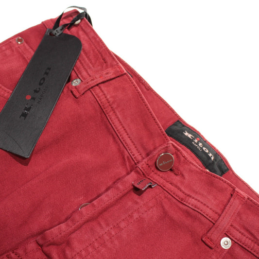 Kiton NWT 5 Pocket Jean Cut Pants Size 33 US Solid Red Cotton Blend