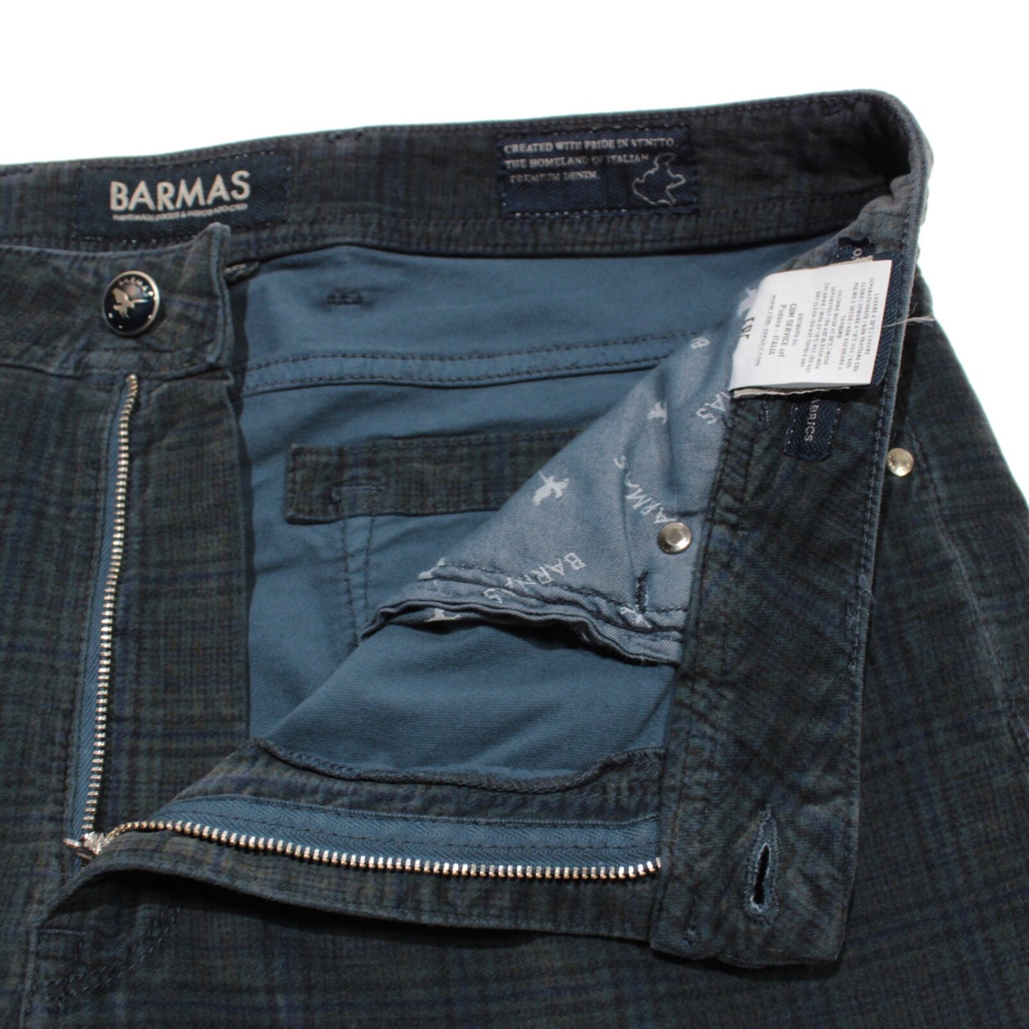 Barmas NWT 5 Pocket Jean Cut Pants Size 36 US In Blue Plaid Cotton Blend