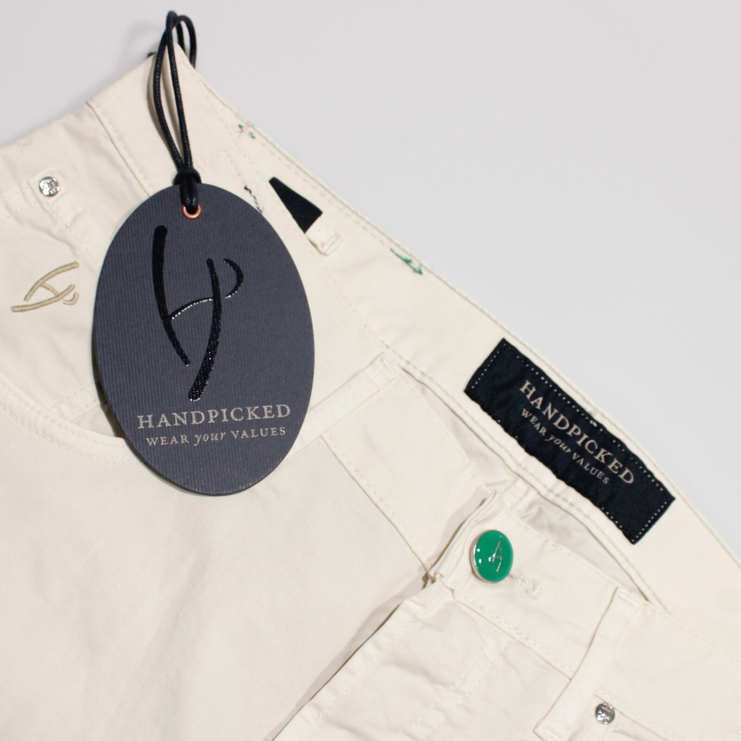 Handpicked NWT 5 Pocket Jean Cut Pants Size 32 US In Solid Beige Cotton Blend
