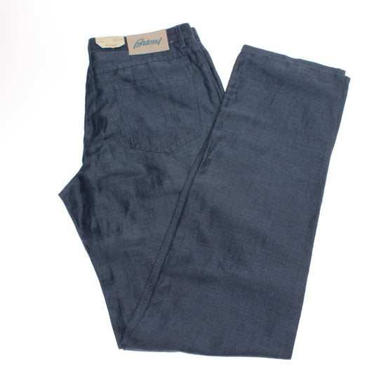Brioni NWT 5 Pocket Jean Cut Pants Size 50 (34 US) Etna In Blue Linen & Cotton