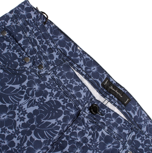 Sartorio Kiton NWT 5 Pocket Jean Cut Pants Size 52 (US 36) Slim Fit Blue Floral