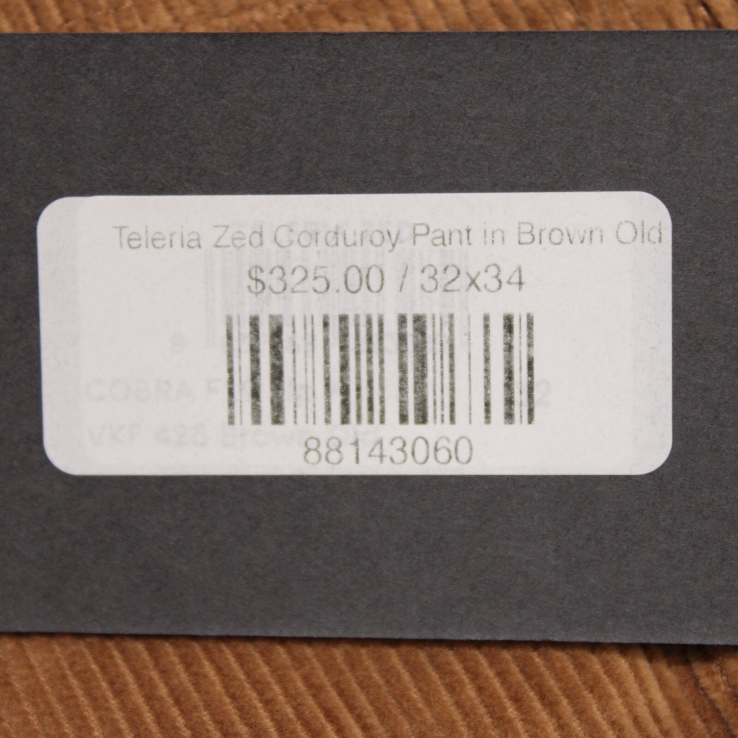 Teleria Zed NWT 5 Pocket Jean Cut Pants Size 32 US In Solid Brown Corduroy