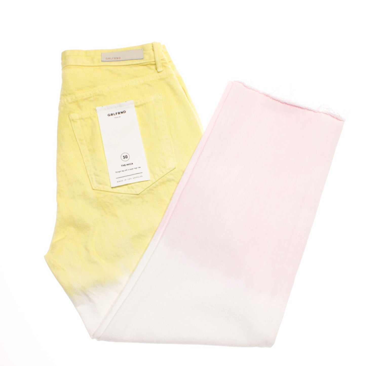 Grlfrnd NWT Jeans Size 30 Mica Straight Super High-Rise Pink Crush/Yellow/White