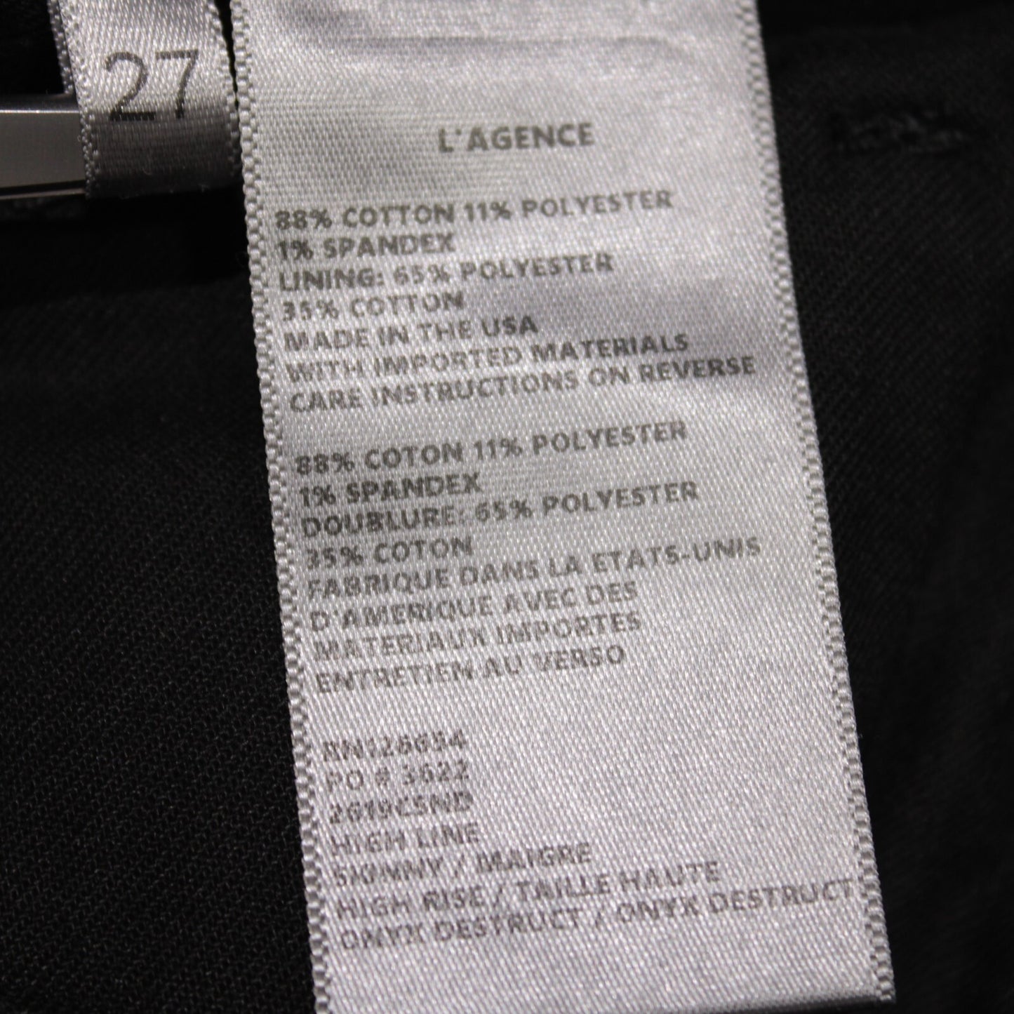 L'Agence NWT Jeans Sz 27 US High Line High Rise Skinny Solid Black Cotton Blend